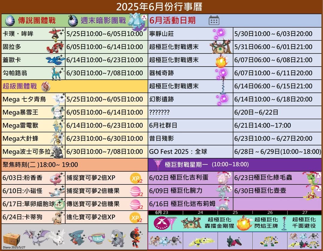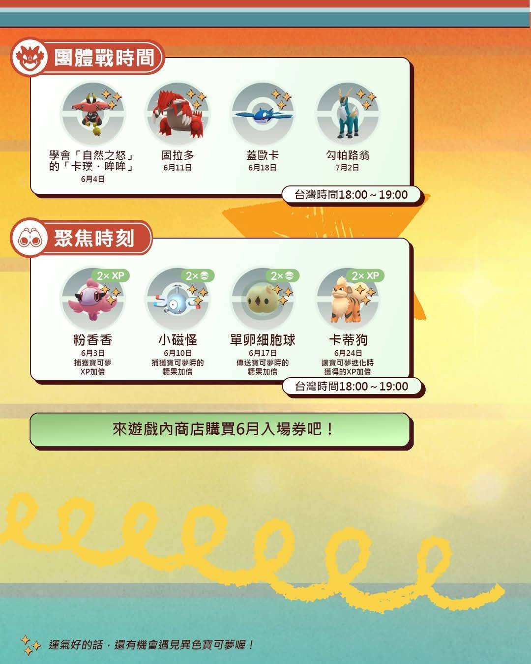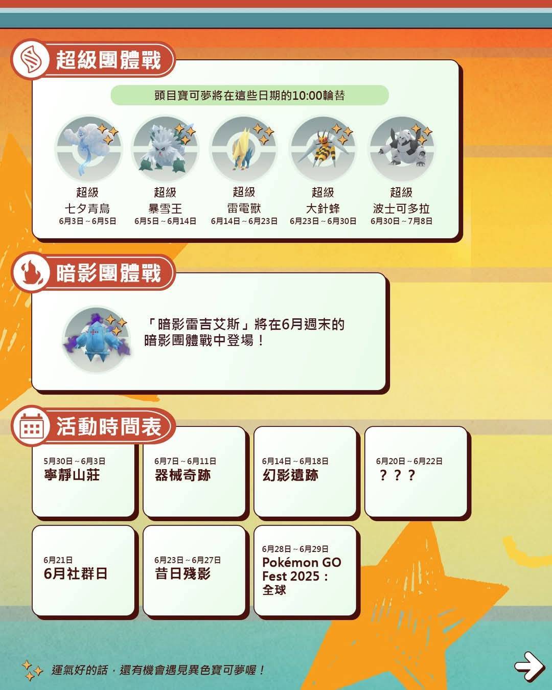 6月Pokemon GO活動資訊、快樂每一天季節資訊、行事曆時間表、團體戰、聚焦時刻、暗影寶可夢、Pokemon GO 2025