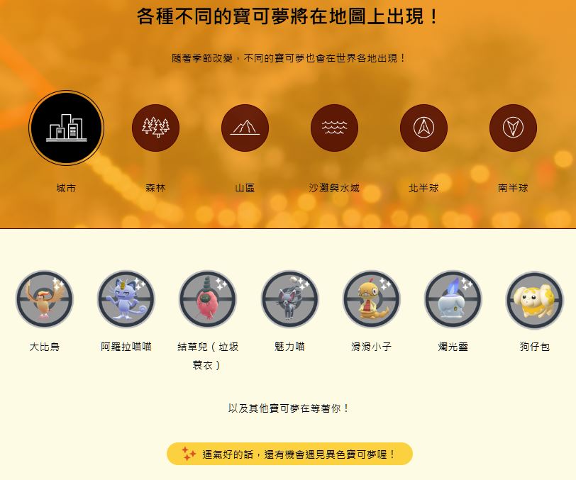 隨著季節改變,不同的寶可夢也會在世界各地出現!