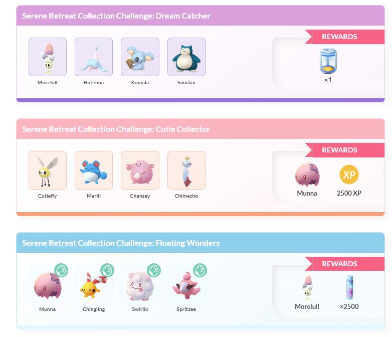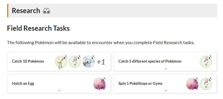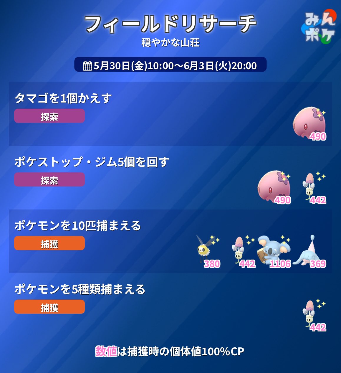 05/30 更新田野調查任務、寧靜山莊60元特殊調查付費任務、新收藏家挑戰任務 Pokemon GO 2025 發佈日期: 2025-05-302025-05-30 作者: tomchun ※本篇內文資訊參考如下※ - - ※更新文章日期: 2025-05-30 05/30 更新任務 Pokemon GO 2025 – 05/30 更新田野調查任務 ●旋轉五個道館或補給站 ●孵化一顆蛋 ●捕捉10隻寶可夢 ●捕捉5種不同的寶可夢 – – – 寧靜山莊60元特殊調查付費任務 – – 活動寶可夢色違機率表參考 – – 收藏家挑戰 – —