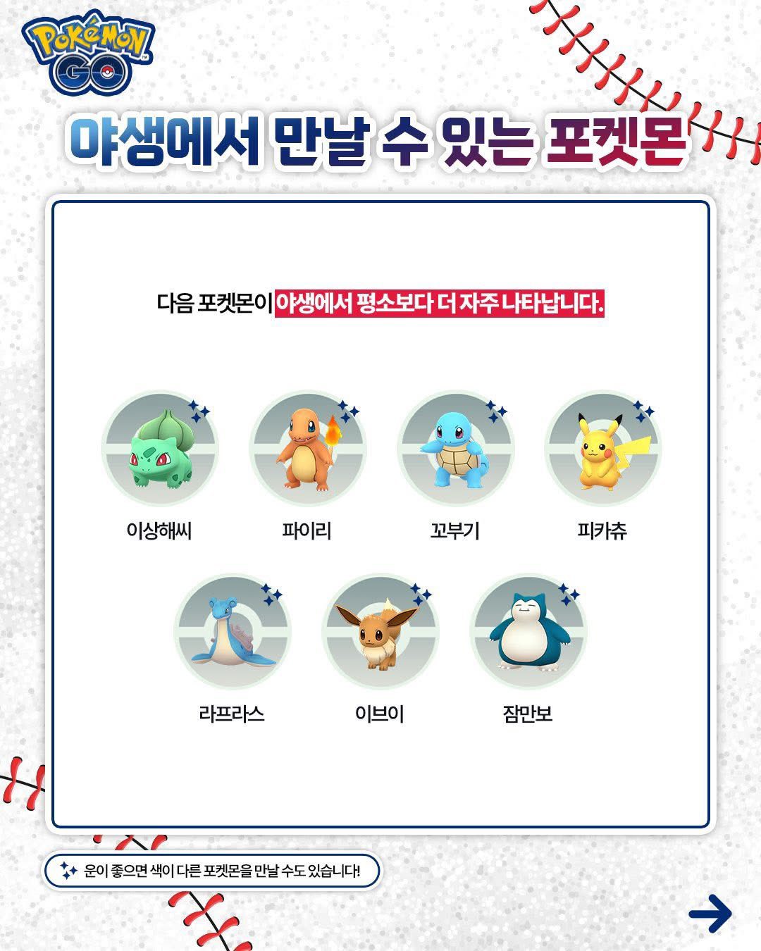 「快來釜山社稷棒球場的 Pokémon GO 攤位看看吧!參加攤位的現場活動,還有機會獲得特別獎品。觀賽時也別忘了為你的隊伍加油打氣!」