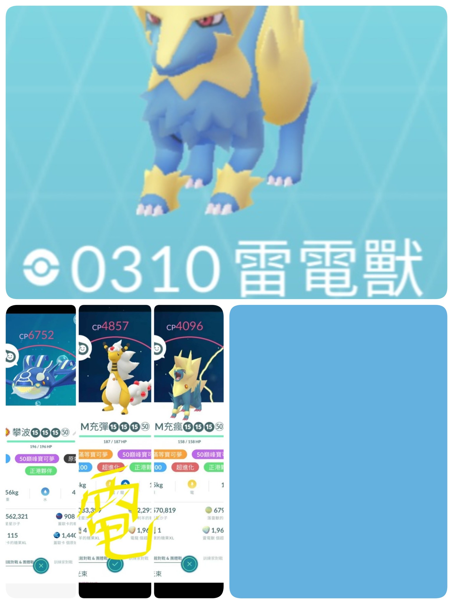 配合的頂尖超進化的有 電系有3隻:雷電獸,蓋歐卡,電龍