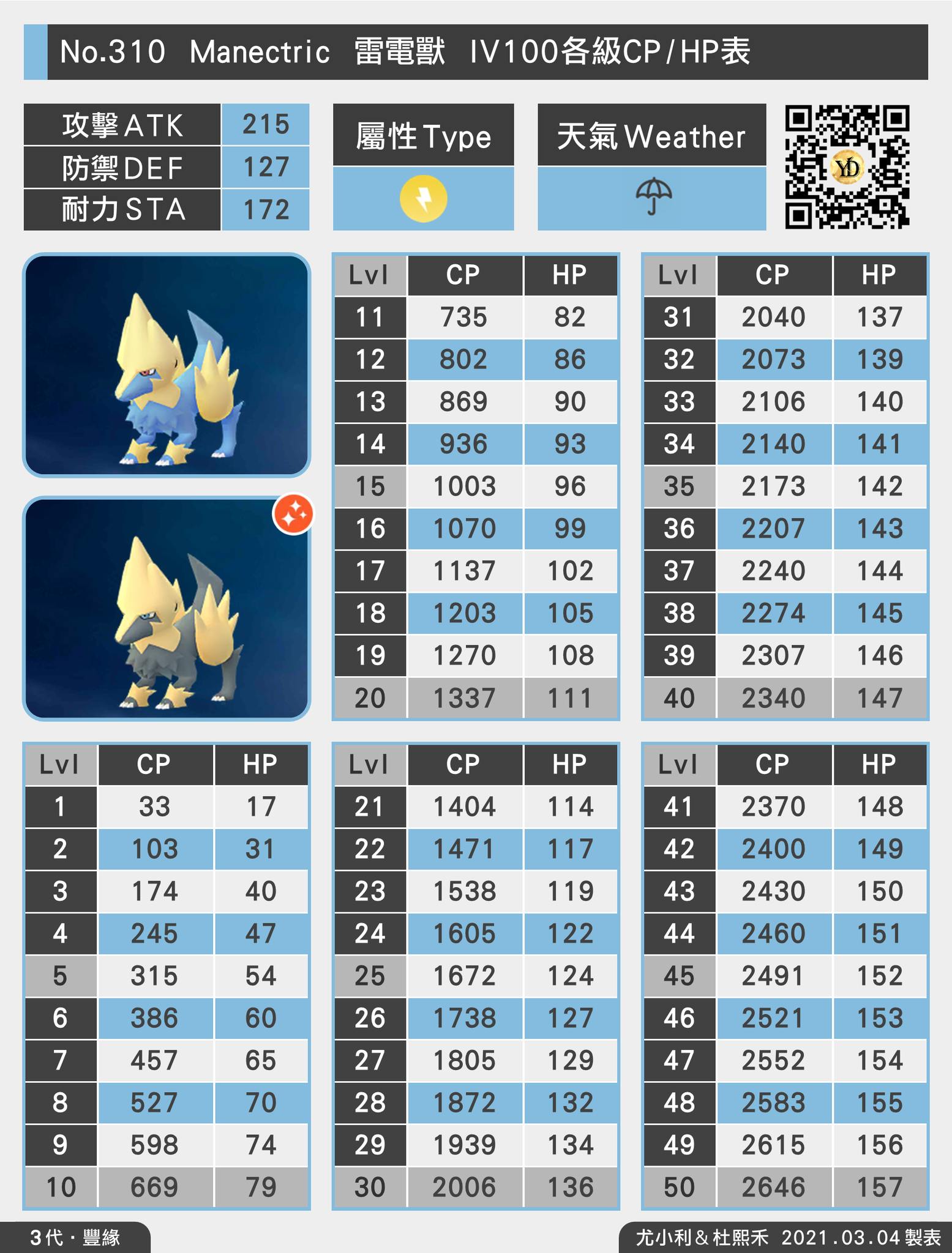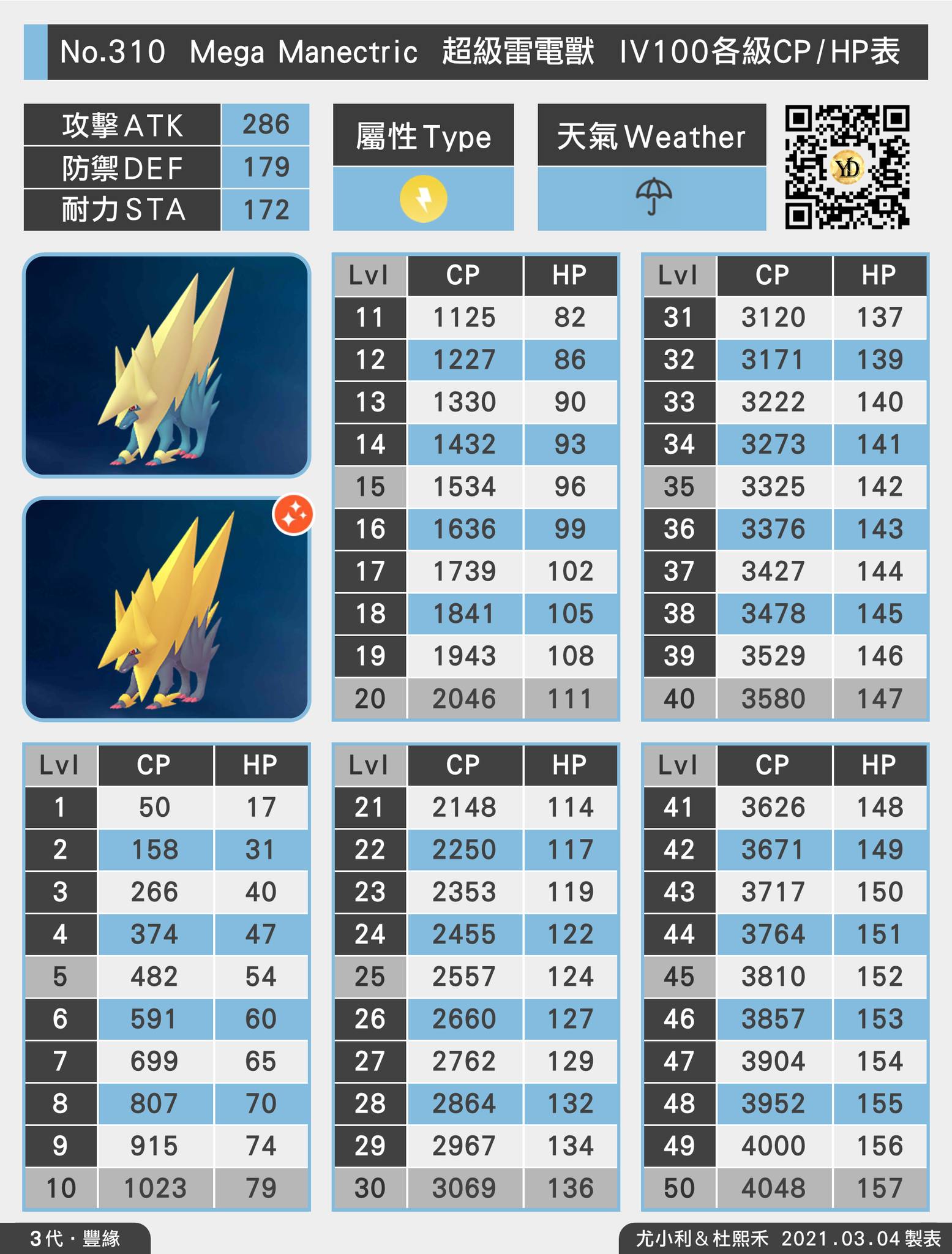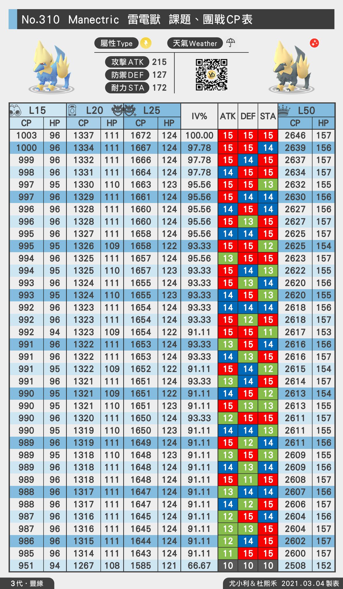 大師聯盟 等級 50 最佳IV組合(Rank 1) Lvl 50 15/15/15 CP 4652