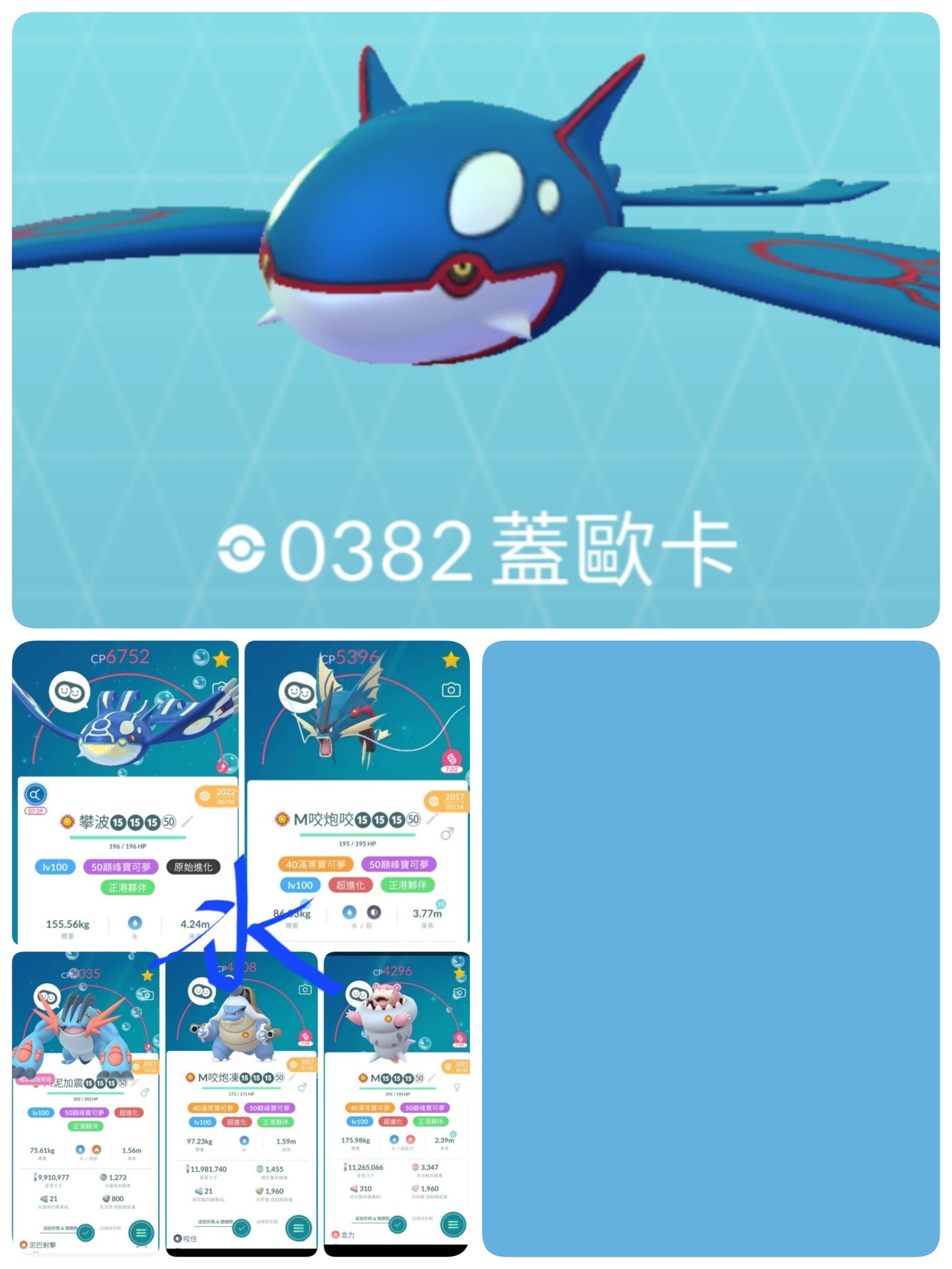 搭配的頂尖超進化的有: 水系有5隻:蓋歐卡,水箭龜,巨沼怪,呆河馬,暴鯉龍