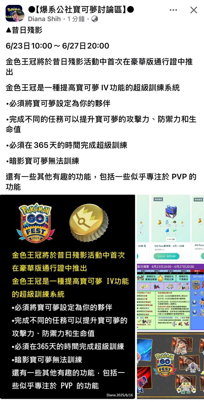 Gold Deluxe Pass 新通行證 金色王冠 Pokemon GO FEST 2025