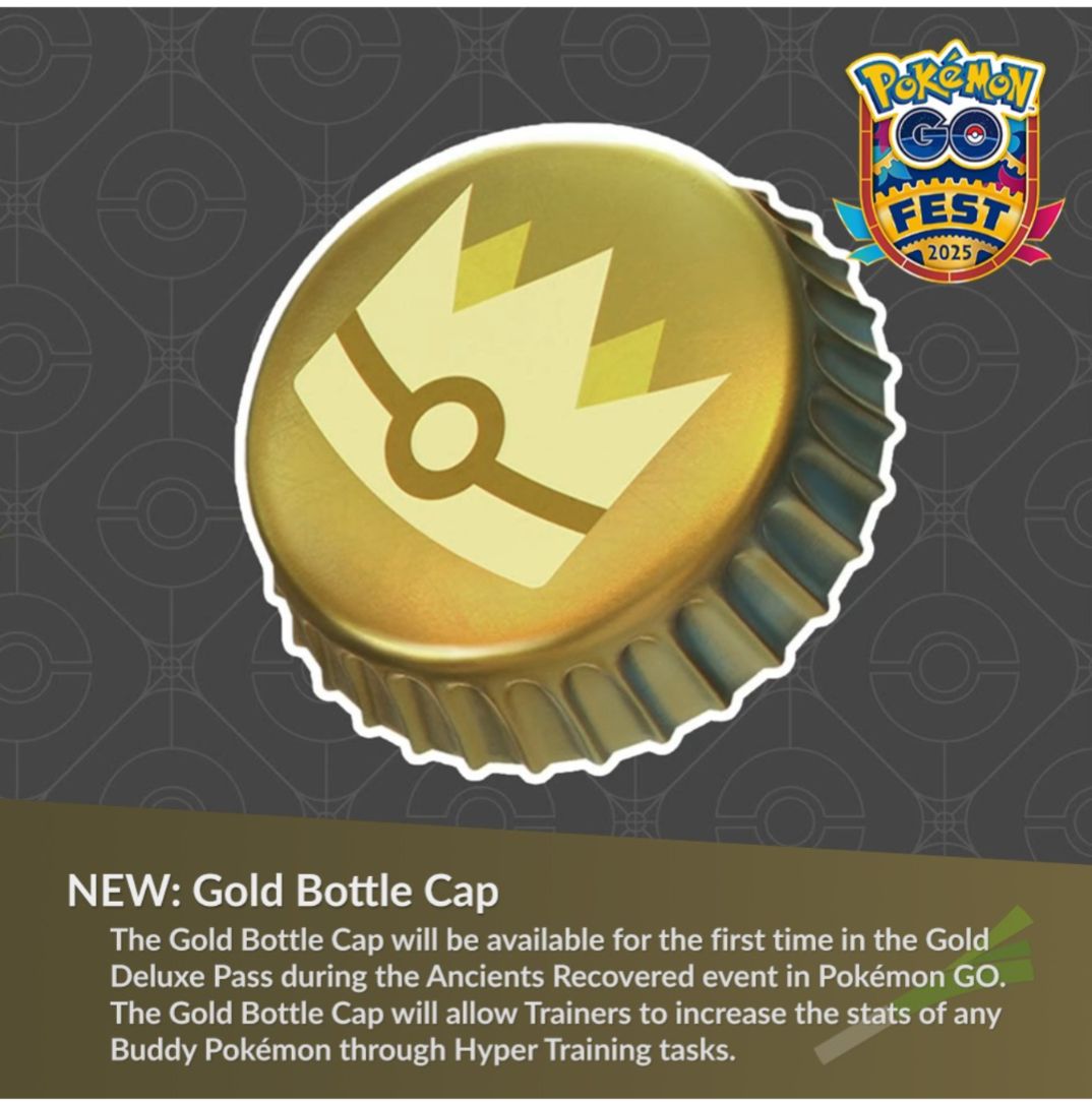 The Gold Bottle Cap will be available for the first time in the Gold Deluxe Pass during the Ancients Recovered event in Pokémon GO.