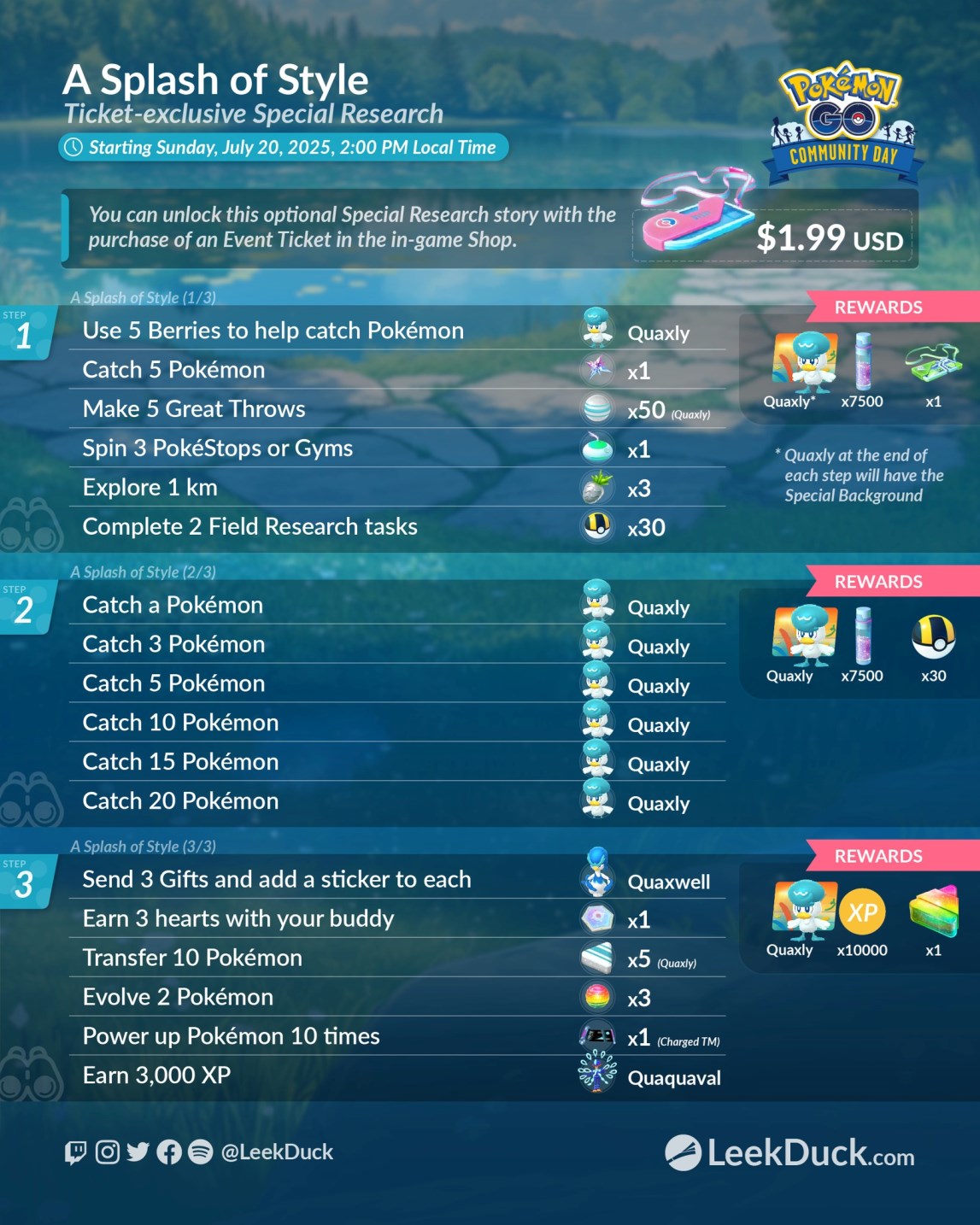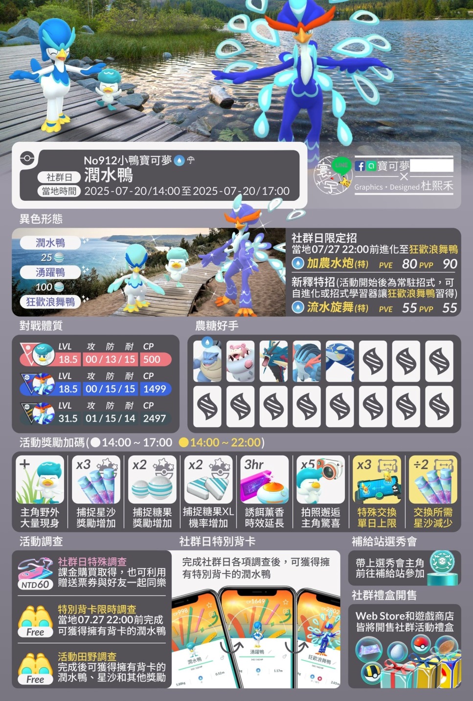 07/20 潤水鴨社群日 特殊招式 付費限時調查任務 Pokemon GO 2025