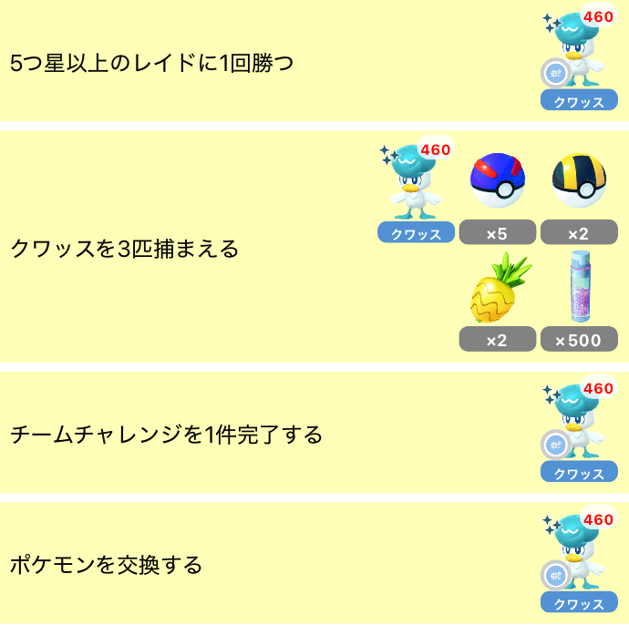 捕捉3隻潤水鴨 潤水鴨(CP 460) 5顆 超級球 2顆 高級球 2顆 凰梨果 500 星星沙子