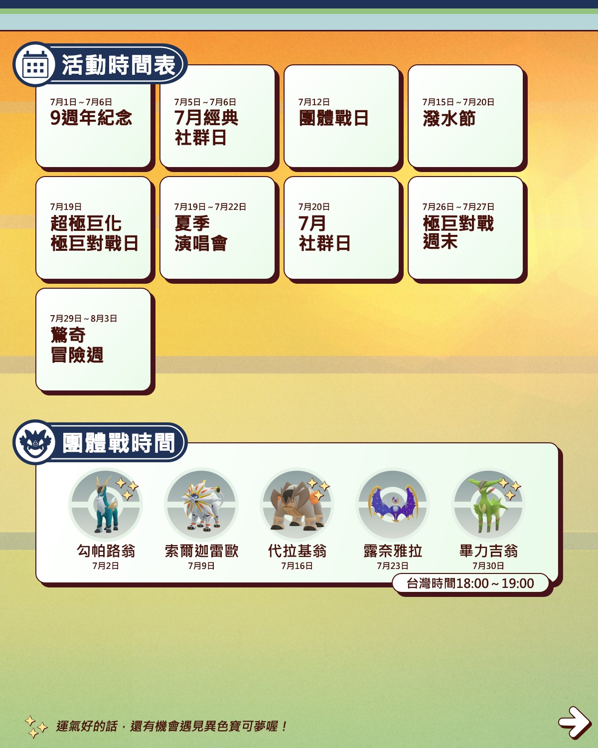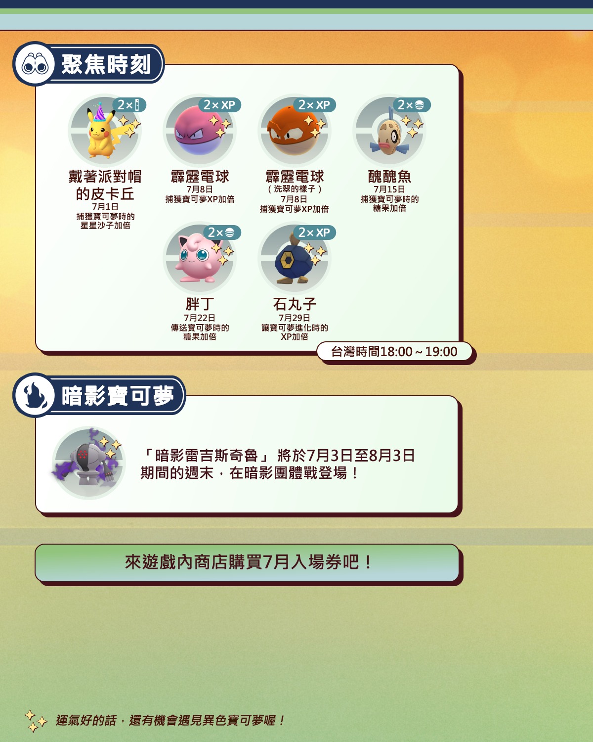 2025 Pokemon GO 7月活動行事曆下載、聚焦時刻、團體戰頭目表、更多活動時間公告