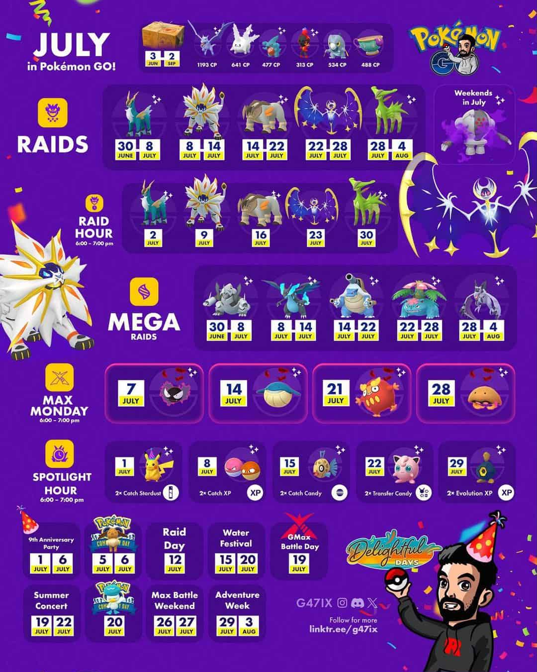 Pokémon GO’s July Content Update is bringing the fun with events like the 9th Anniversary Party, Water Festival, and Summer Concert! 🥳