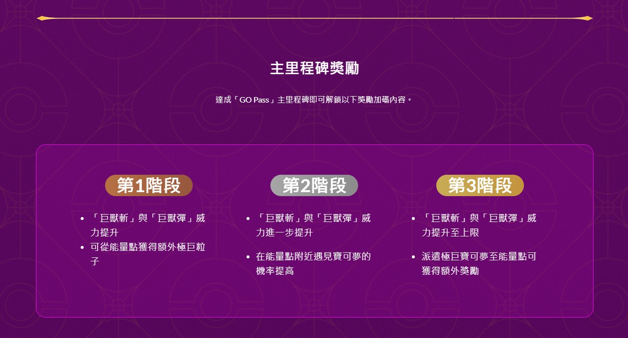 訓練家能夠在累積進度的同時,將「GO Pass豪華版」與免費版「GO Pass」的獎勵全部帶回家!訓練家可以隨時購買「GO Pass豪華版」,並且領取先前已經達成解鎖條件的獎勵!