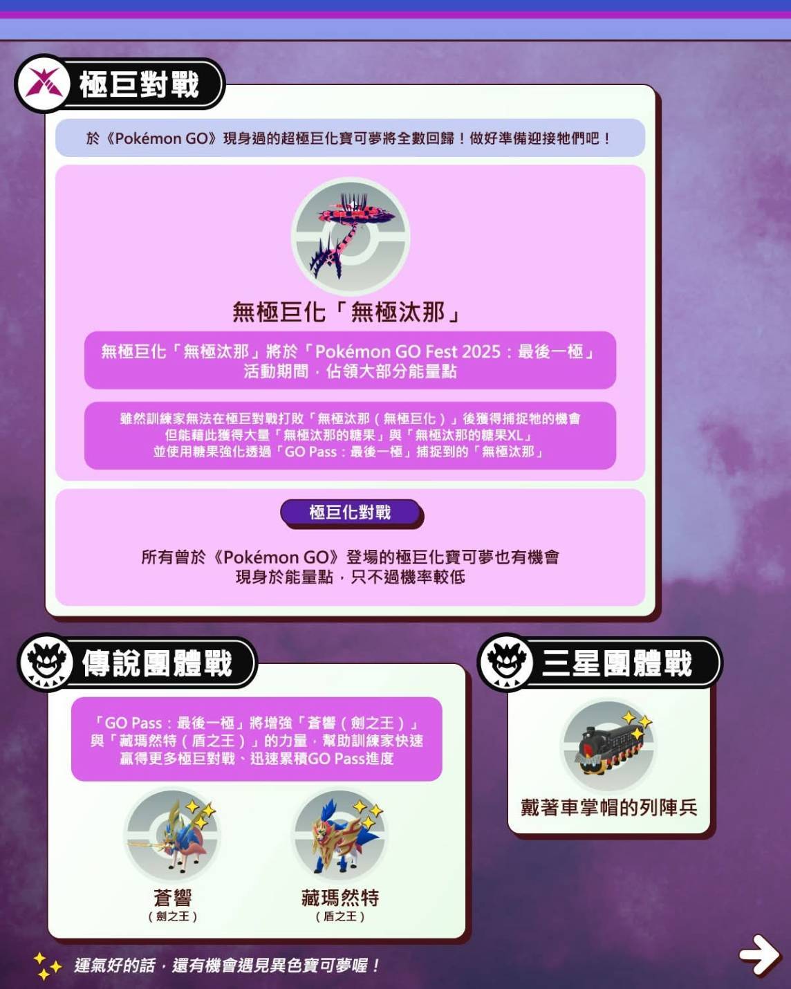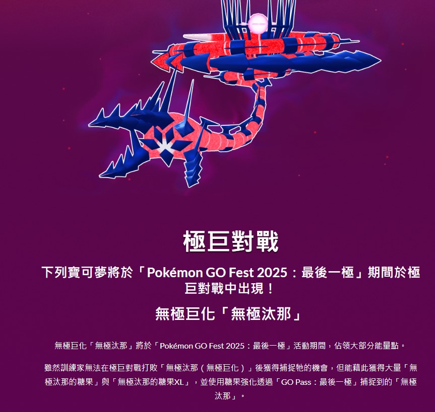8月 Pokemon GO Fest 2025:最後一極 活動預告資訊 無極汰那限時調查任務(無極巨化)