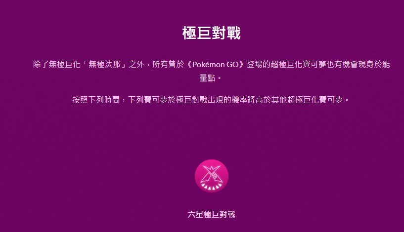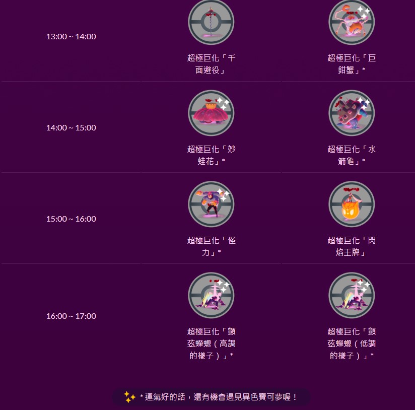 在一星~四星極巨化對戰中,遇見異色極巨化寶可夢的機率將會提高