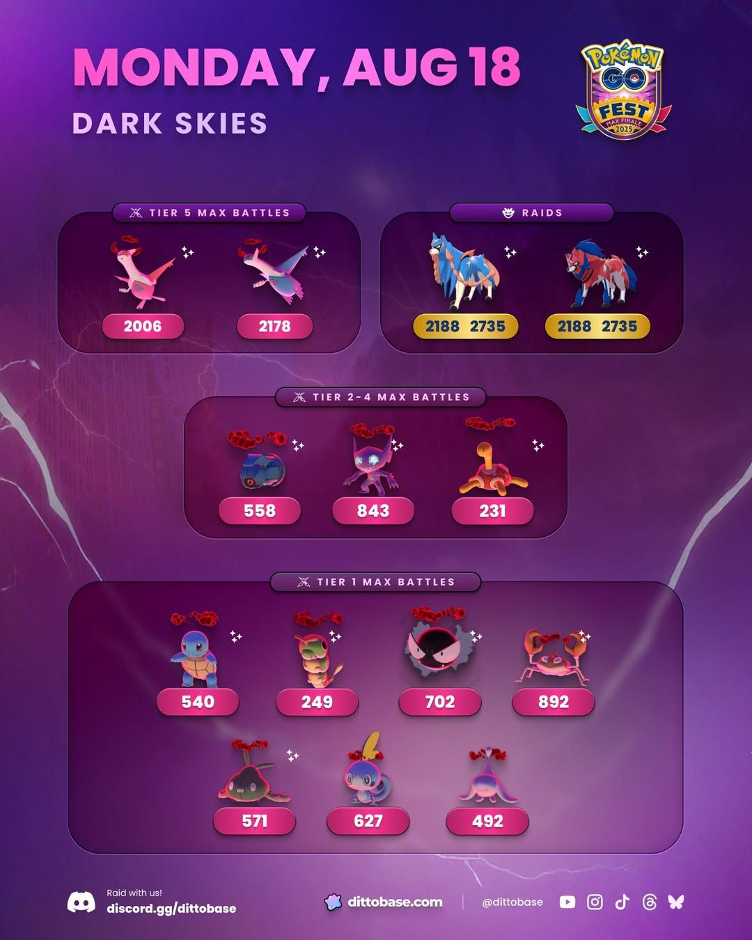 台灣時間8月18日~8月22日期間,訓練家可參與「紫黑之空」活動並獲取GO點數至每日上限,為「GO Pass:最後一極」取得開場優勢。台灣時間8月23日00:00~8月24日21:00期間,每日可獲得的GO點數則沒有上限!