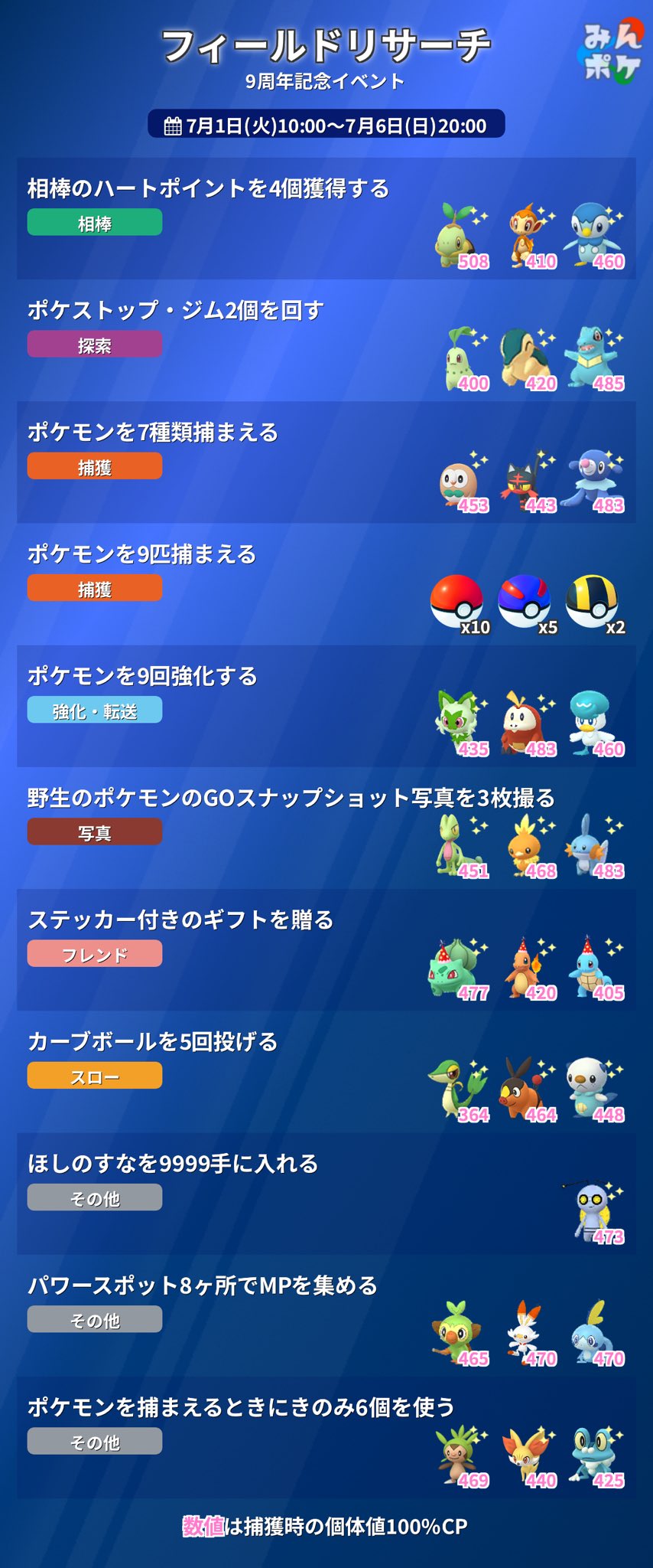 07/01 9週年田野任務獎勵寶可夢更新 Pokemon GO 2025
