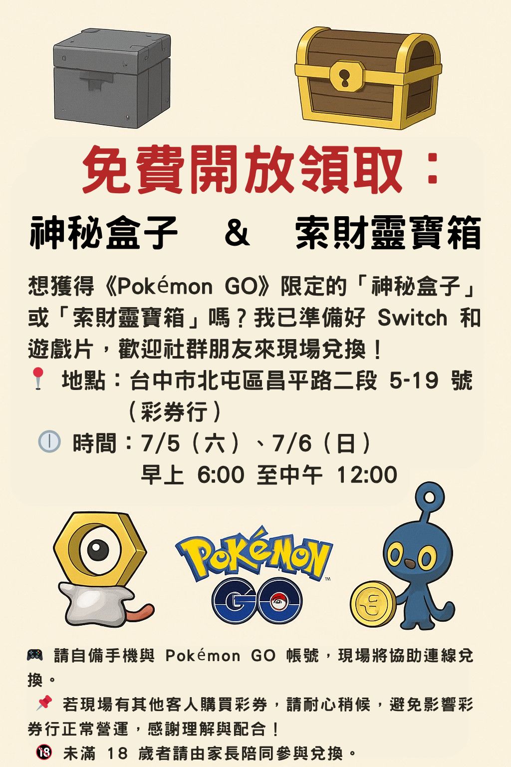 台中市北屯區彩券行神秘盒子&索財靈寶箱兌換領取! Pokemon GO 2025
