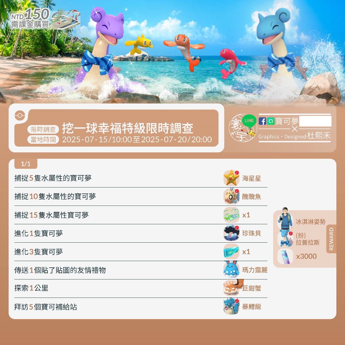 請注意限時調查有時限。訓練家必須在台灣時間2025年7月20日20:00前完成限時調查相關課題並領取獎勵。