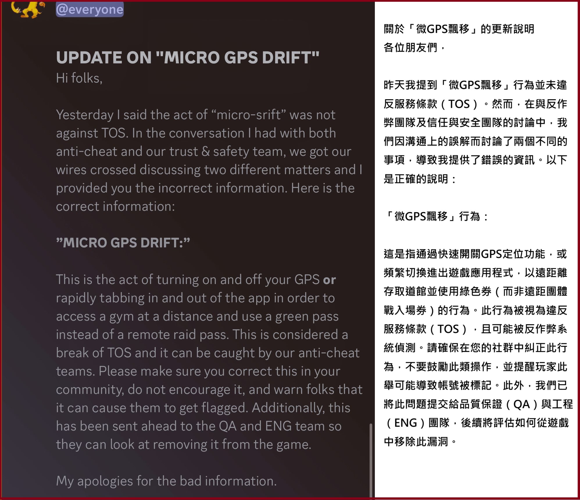 官方:關於「微GPS飄移」的更新說明(詳圖)