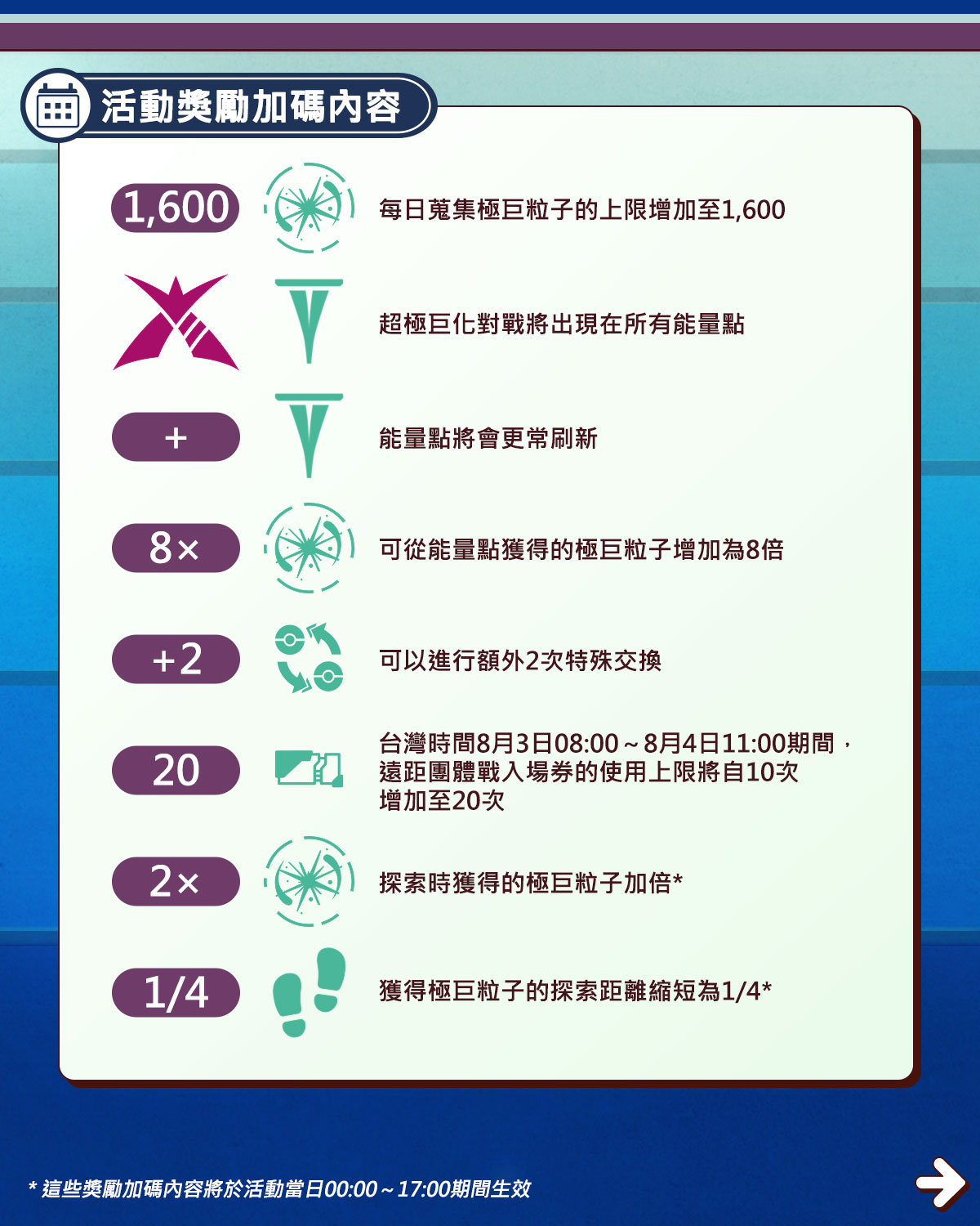 下列獎勵加碼內容將於台灣時間2025年8月3日00:00~17:00期間生效。