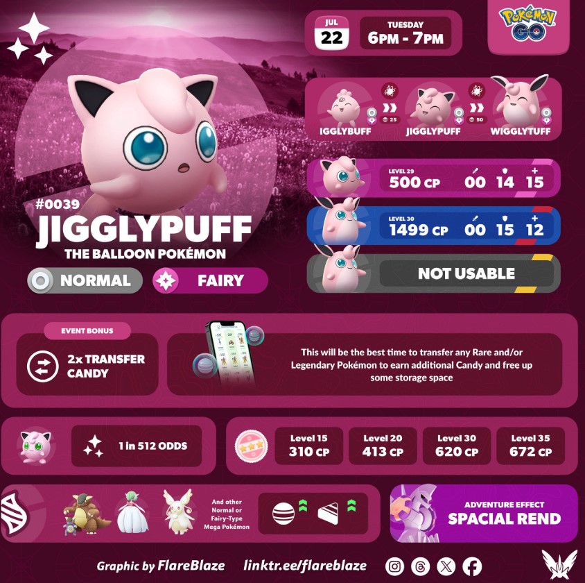 ● 07/22 聚焦時刻 : 胖丁 🎁獎勵:進化寶可夢,雙倍糖🍬