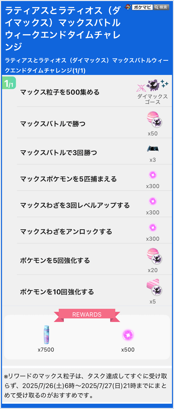 ● 07/26「極巨化拉帝亞斯」和「極巨化拉帝歐斯」極巨化團體戰