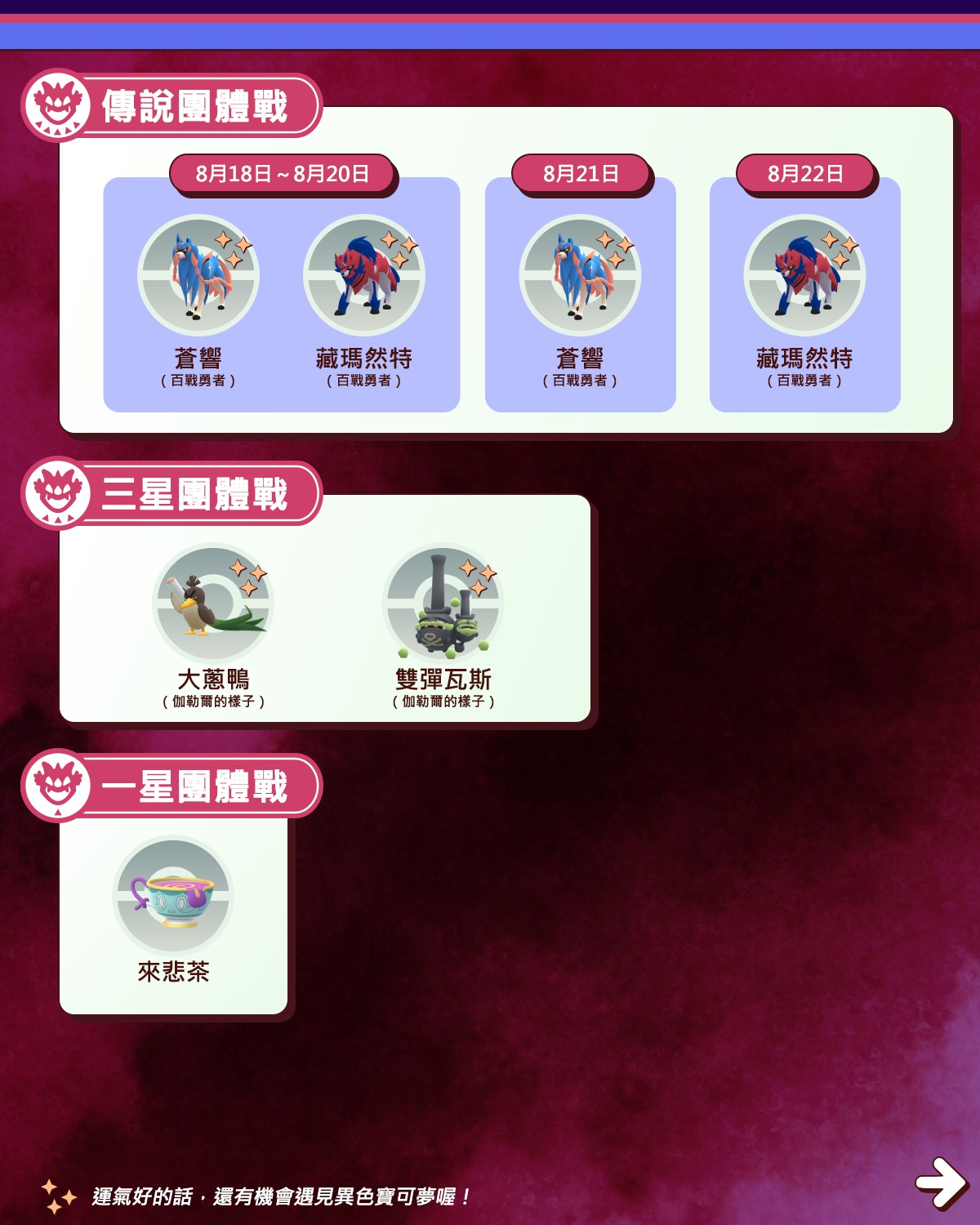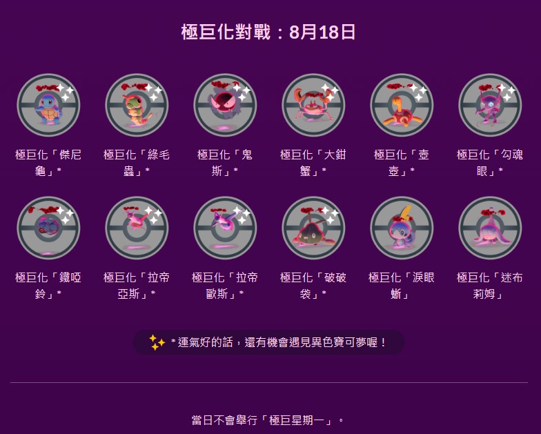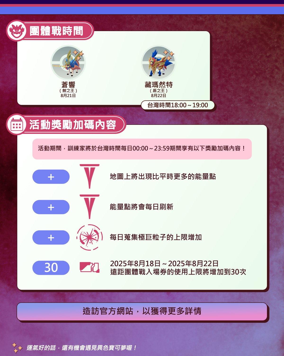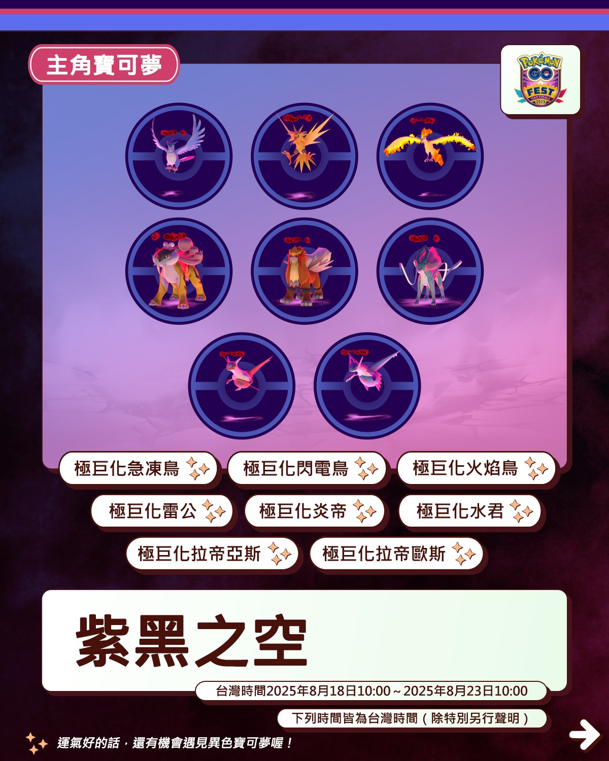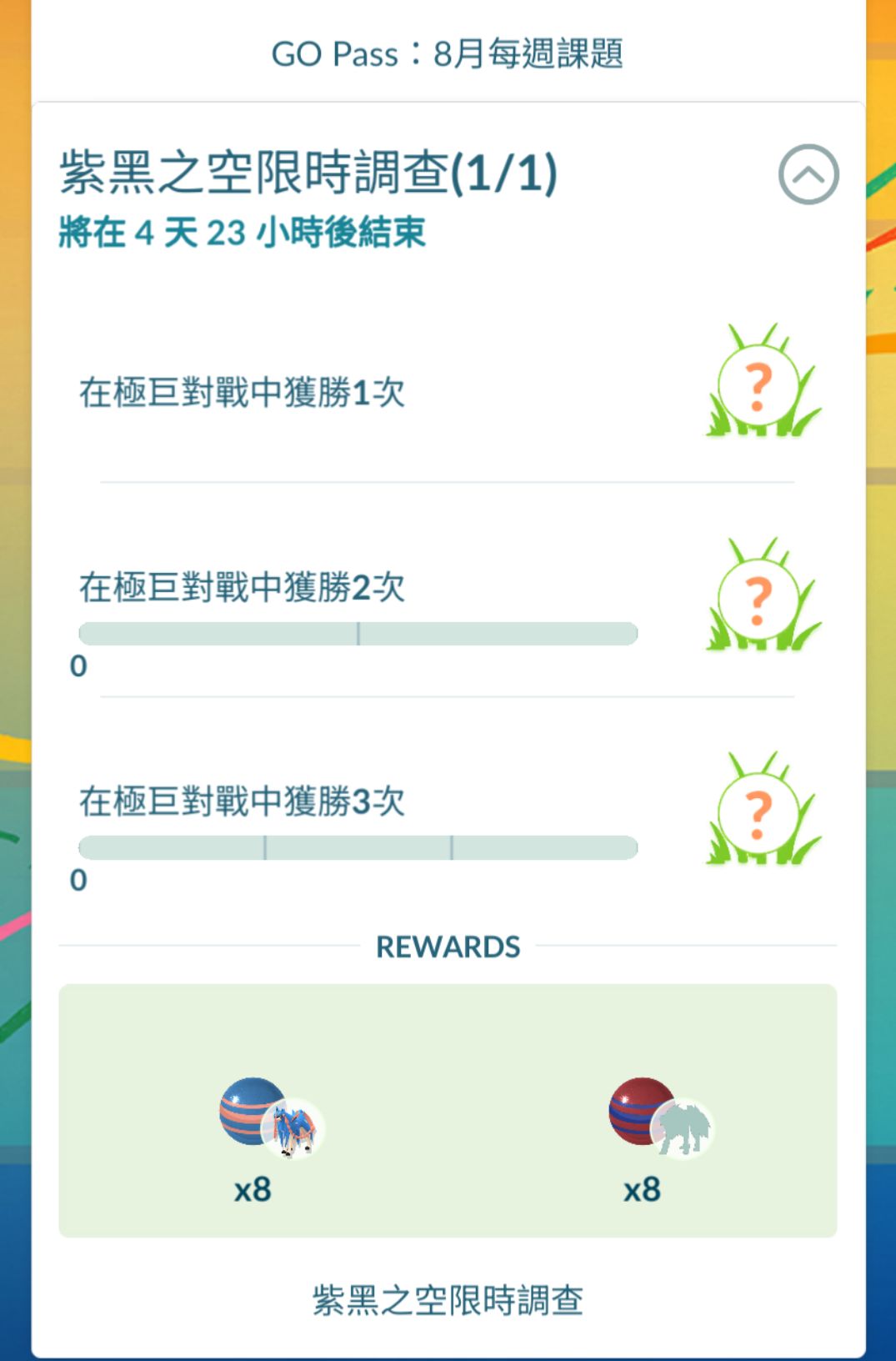 08/18 Pokémon GO:紫黑之空活動 限時調查任務 加碼獎勵 2025