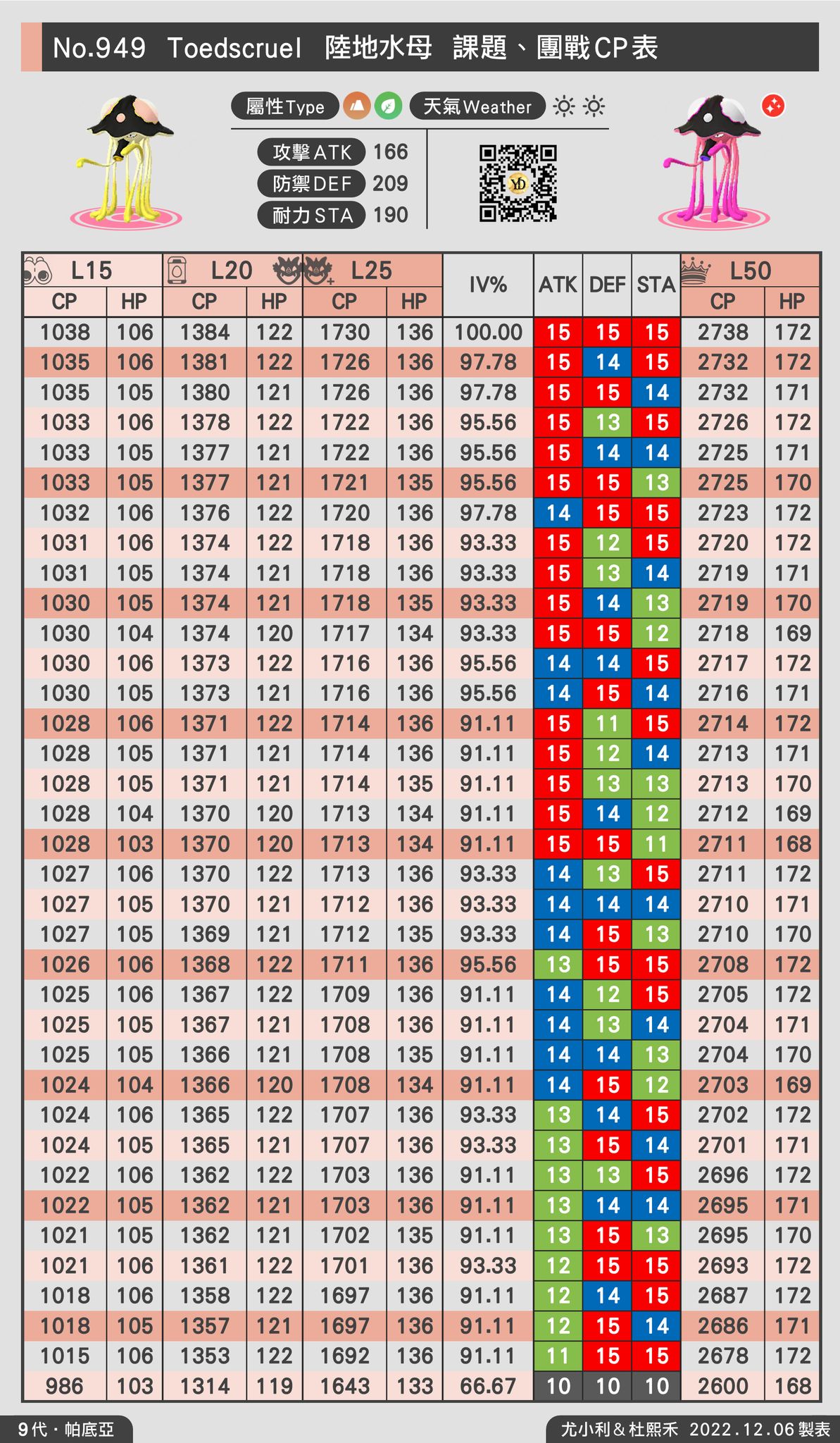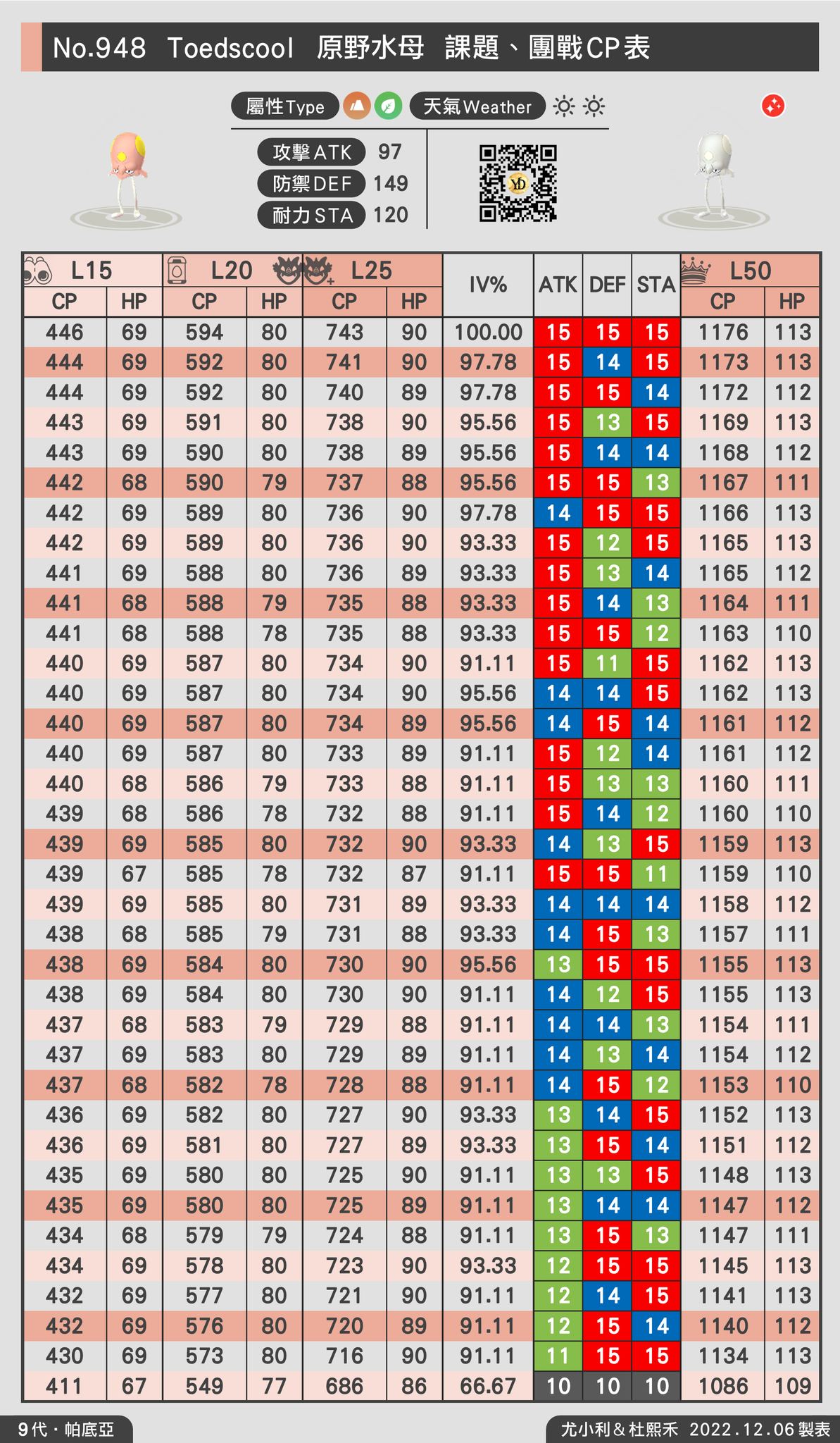 超級聯盟 等級50 最佳IV組合(Rank 1) Lvl 50 15/15/15 CP 1176