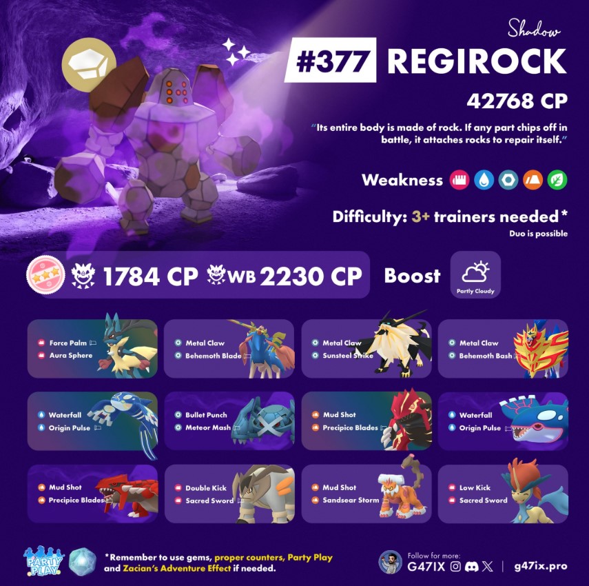 Shadow Regirock will return to Shadow Raids on weekends starting August 3rd.