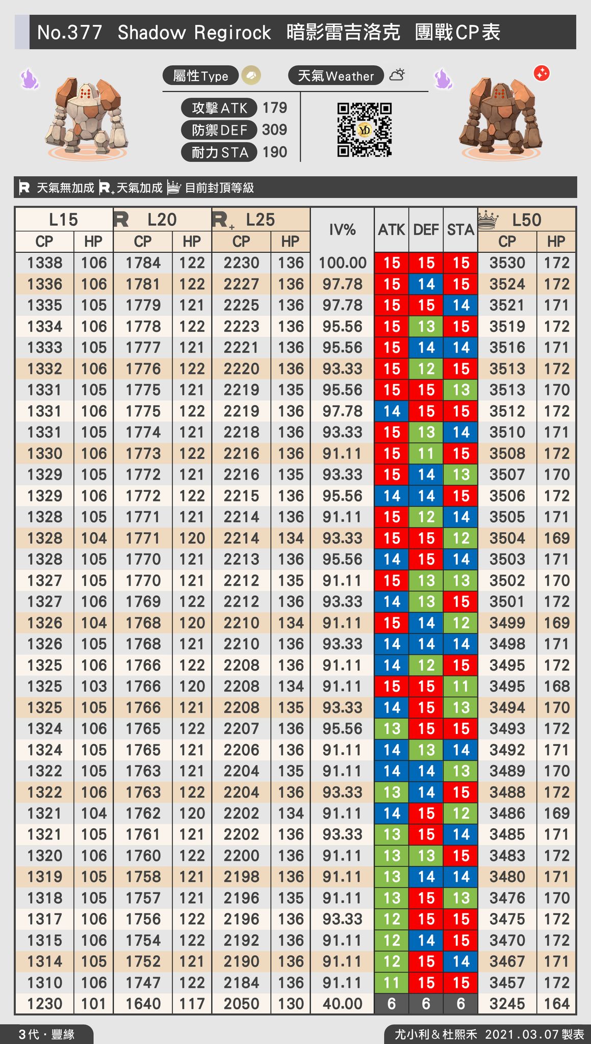 大師聯盟 等級50 最佳IV組合(Rank 1) Lvl 50 15/15/15 CP 3530