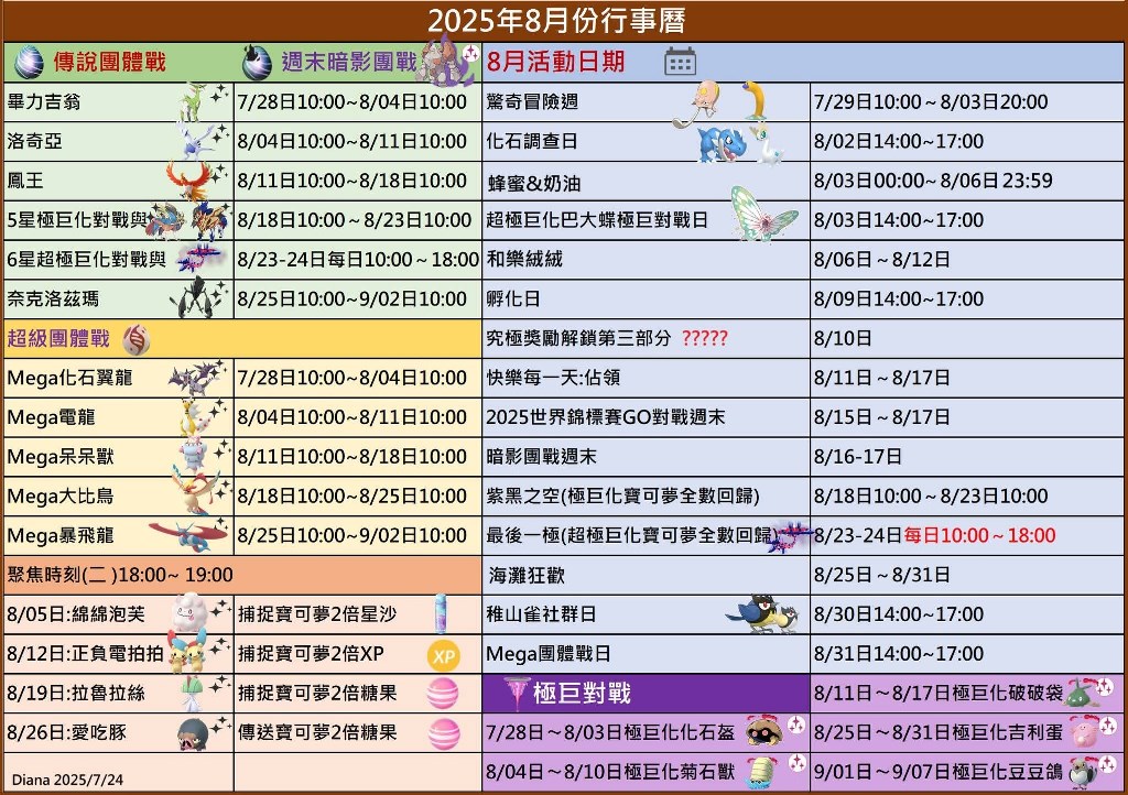 08/04 洛奇亞&超級電龍團體戰資訊更新 Pokemon GO 2025