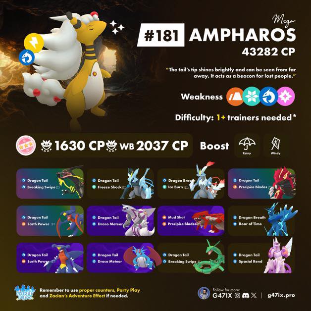 8 月 4 日至 8 月 11 日期間,Lugia 將在 5 ★突襲中出現,而 Mega Ampharos 將在 Mega 突襲中出現。