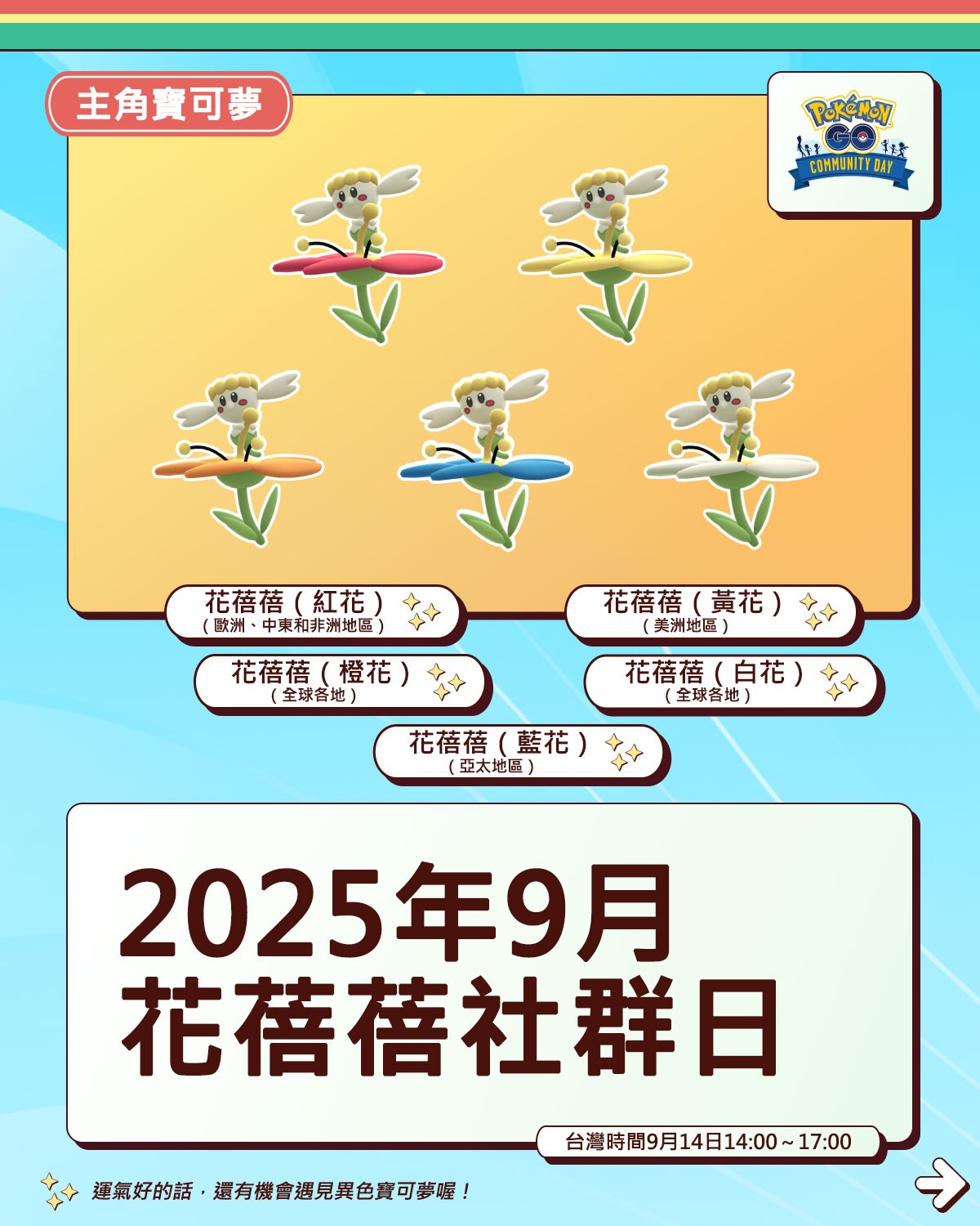 9月社群日的主角寶可夢就是單朵寶可夢「花蓓蓓」!