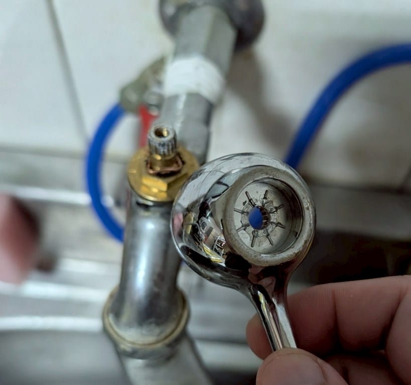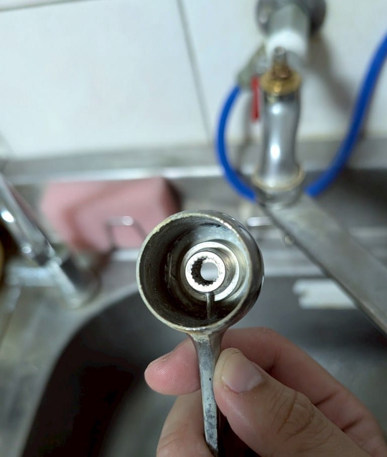 直接左手握好整個水龍頭固定