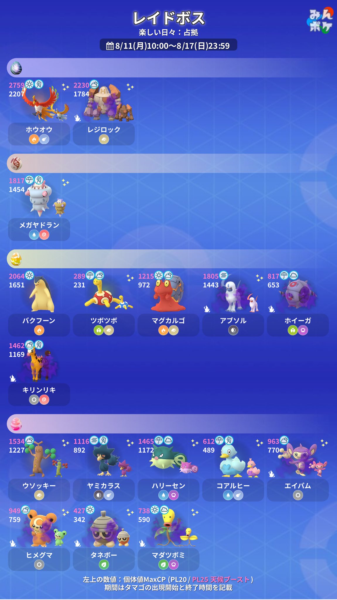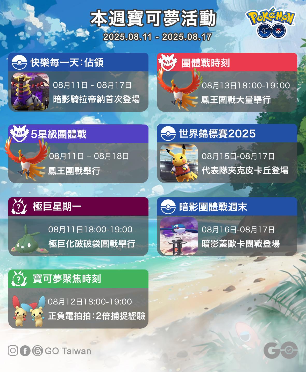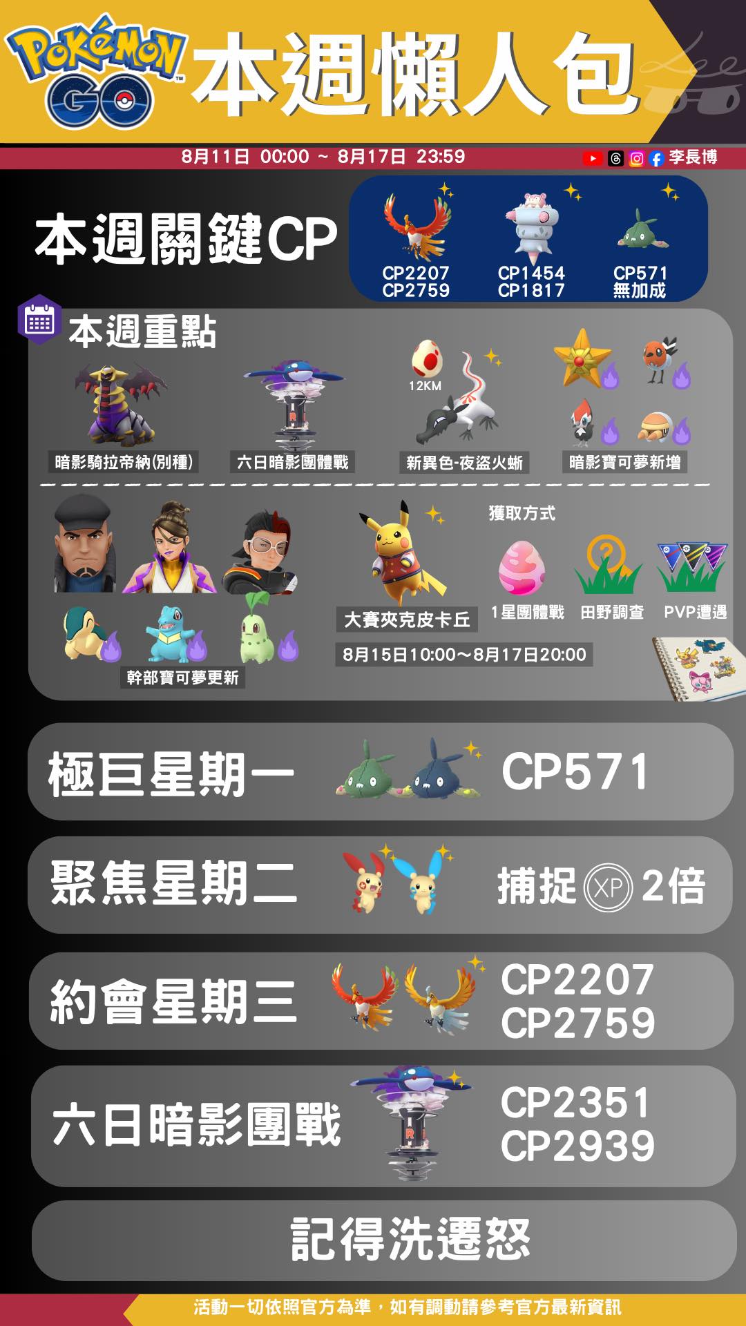 08/11 本週 Pokemon GO 活動資訊提醒、聚焦時刻、BOSS團體戰頭目表、其他活動 2025