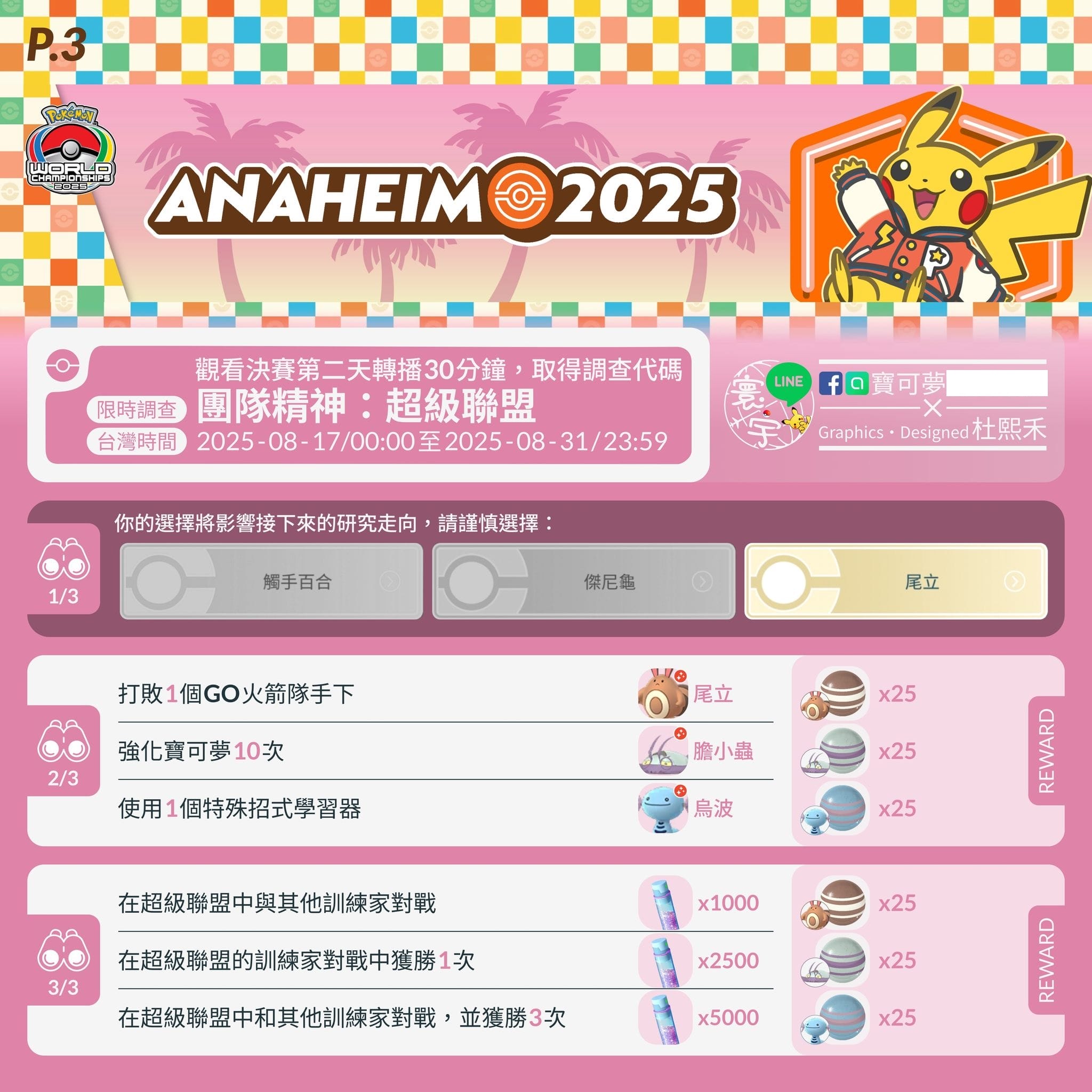 08/18 最新WCS任務序號三組 Pokemon GO 2025 調查