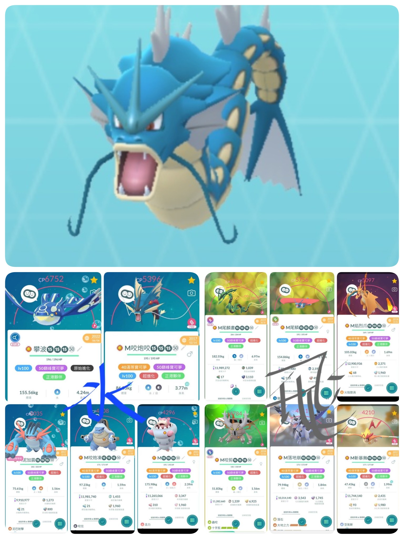 水系有5隻:蓋歐卡,巨沼怪,水箭龜,呆河馬,暴鯉龍