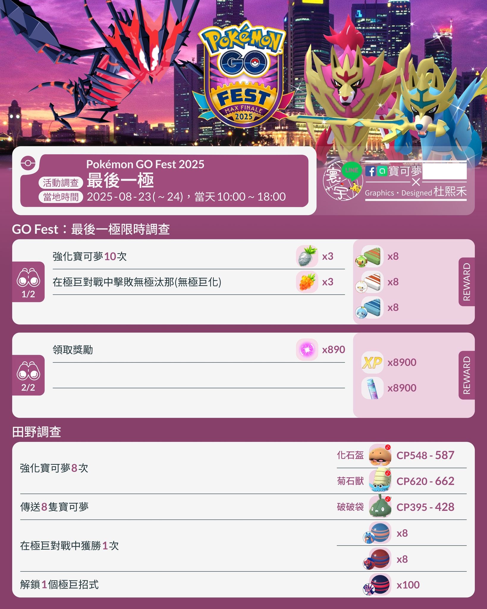 08/23 田野任務更新 Go FEST 最後一極-限時調查任務 Pokemon GO 2025
