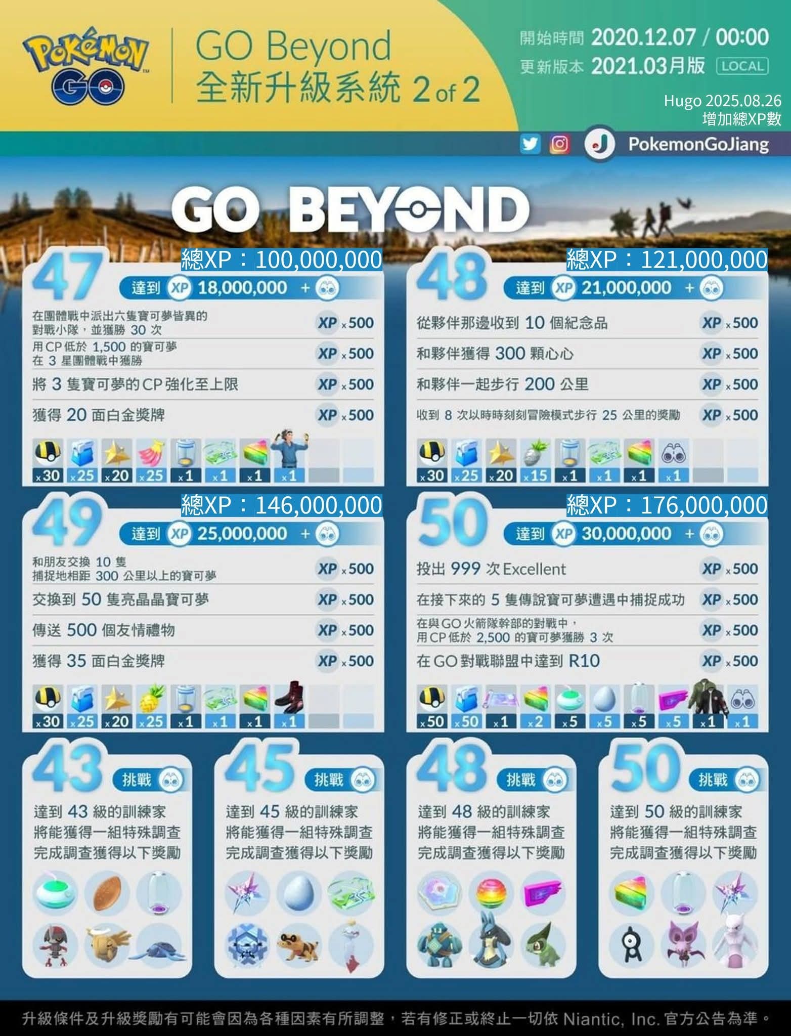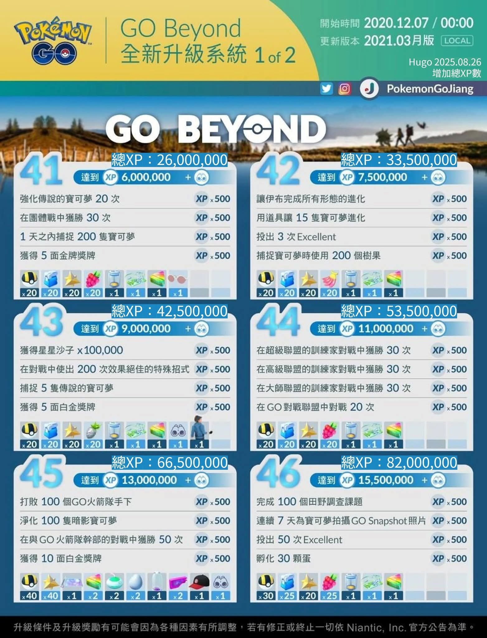 分享一下2020年訓練家41級到50級的任務,官方有提到「從41級提升至50級的升級調查課題將被移除」以及「根據先前已累積的XP,部分訓練家可能會在10月15日自動升級」,先撇除任務不管,大家的經驗值還是可以算一下,或許還有機會。