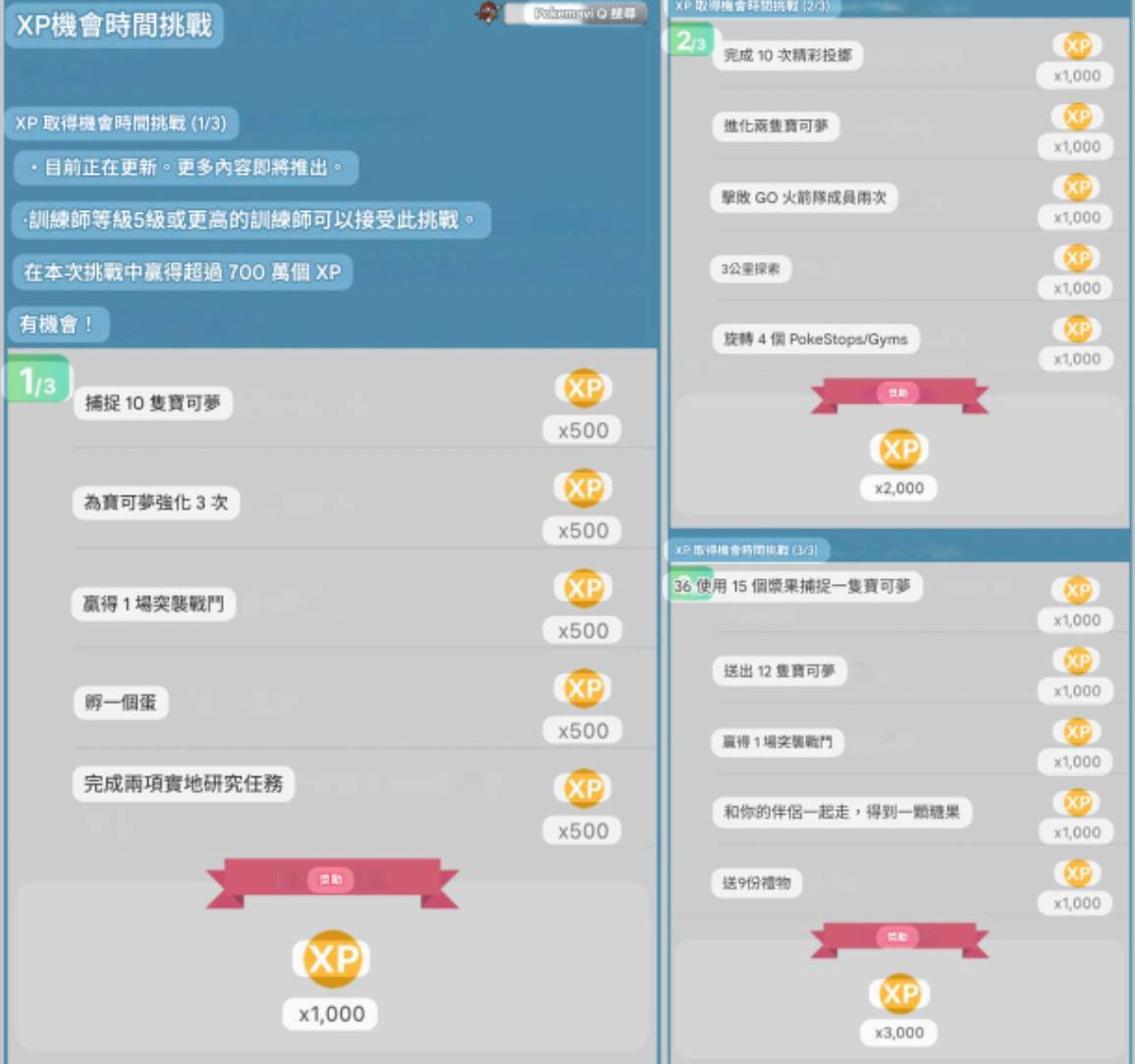 *如欲瞭解截至目前為止獲得的XP,請參閱《Pokémon GO》協助中心文章「查看訓練家檔案及遊戲進度」。