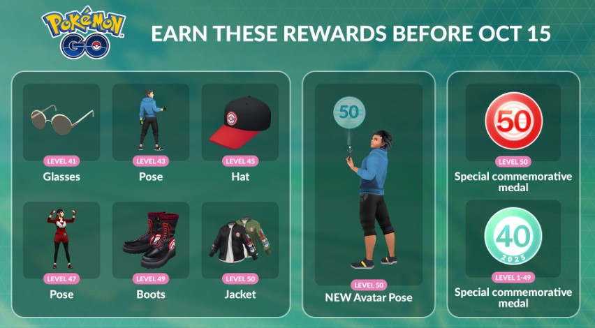 此外,50級的訓練家將獲得「等級50外套」與1個全新訓練家姿勢,紀念訓練家達成的成就。