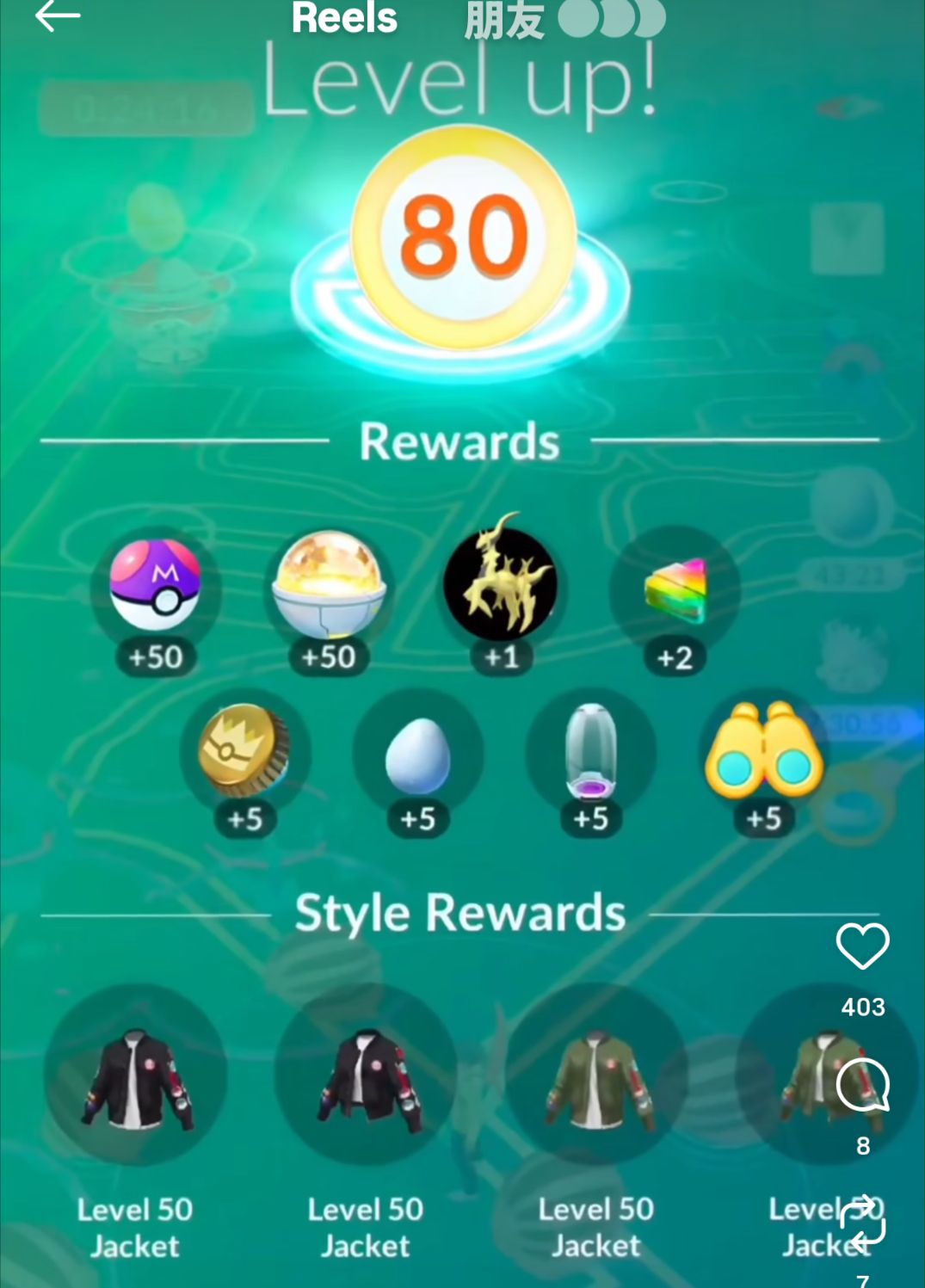 國外寶友分享的80等獎勵寶可夢及道具和相關服飾