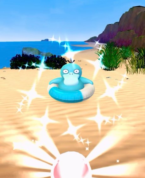 訓練家將有機會在地圖上遇見「戴著泳圈的可達鴨」 * 與「海魔獅」等寶可夢。運氣好的話,還有機會遇見「小貓怪」 * 喔!