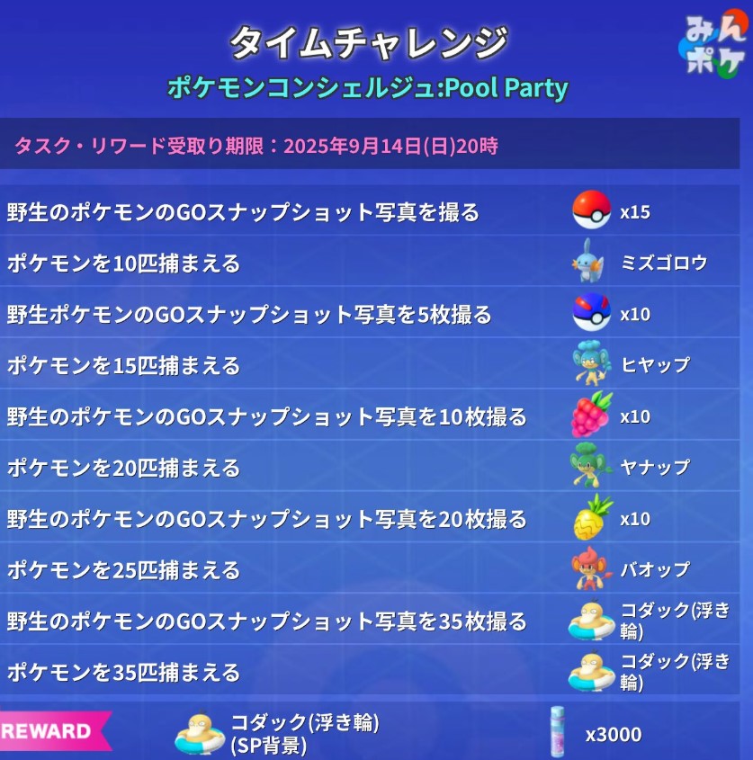 Pokémon GO:寶可夢 禮賓部 泳池派對 限時調查任務更新