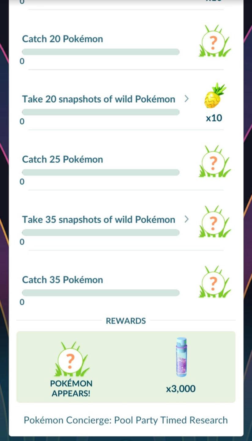Pokémon GO: Pokémon Concierge Pool Party Timed Research