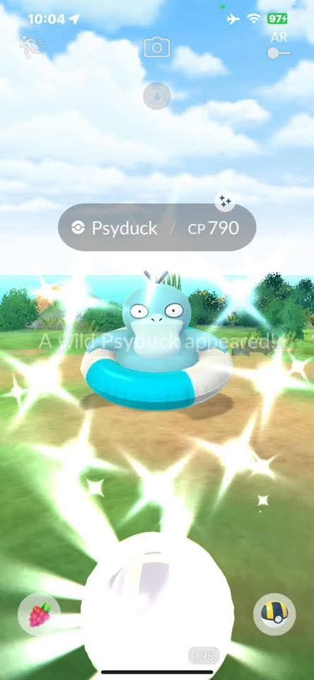 拍攝35張野生寶可夢的GO Snapshot照片:與「游泳圈可達鴨」相遇