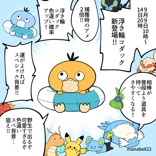 除了戴著游泳圈的可達鴨,大家熟悉的寶可夢和角色也會登場哦!