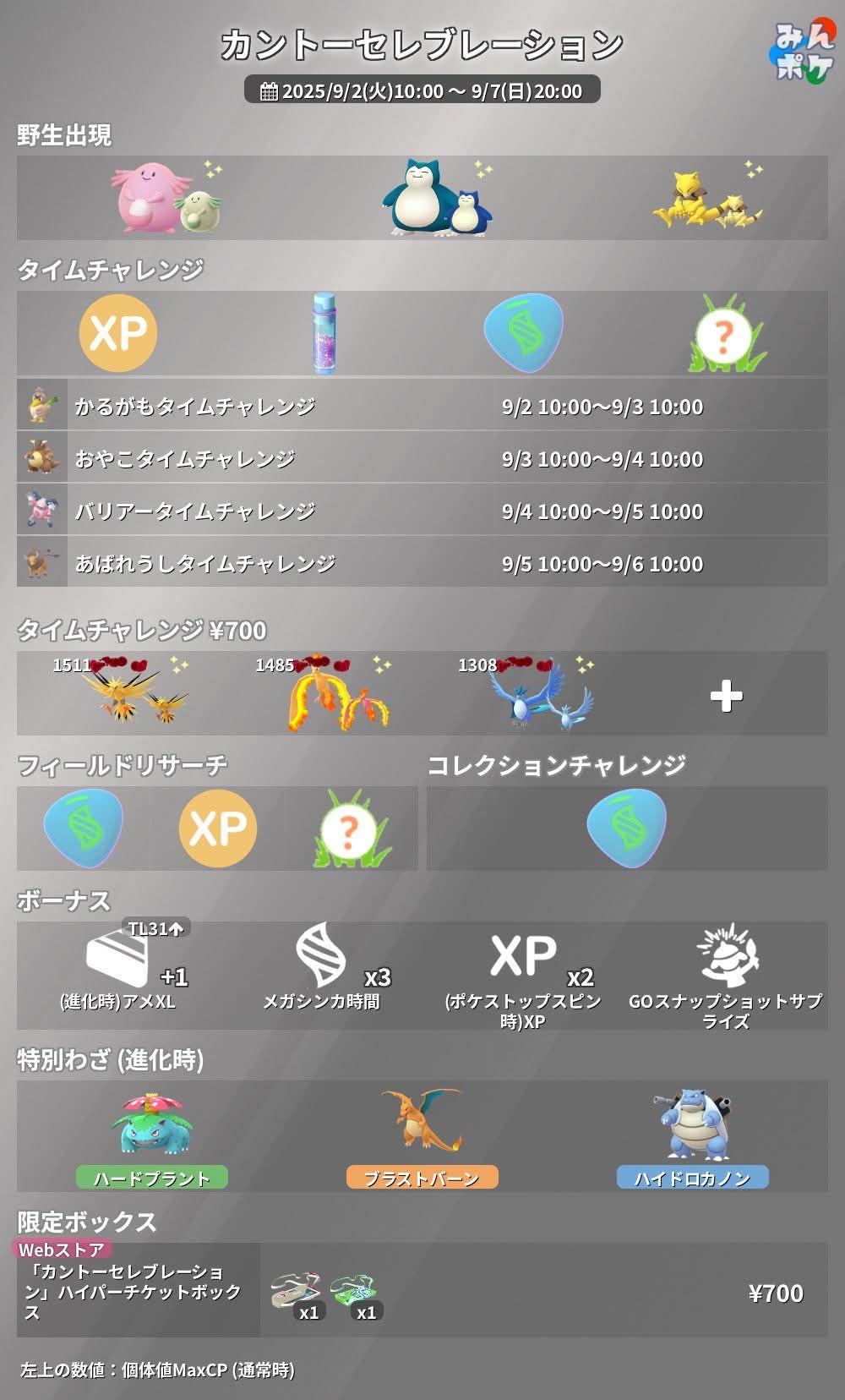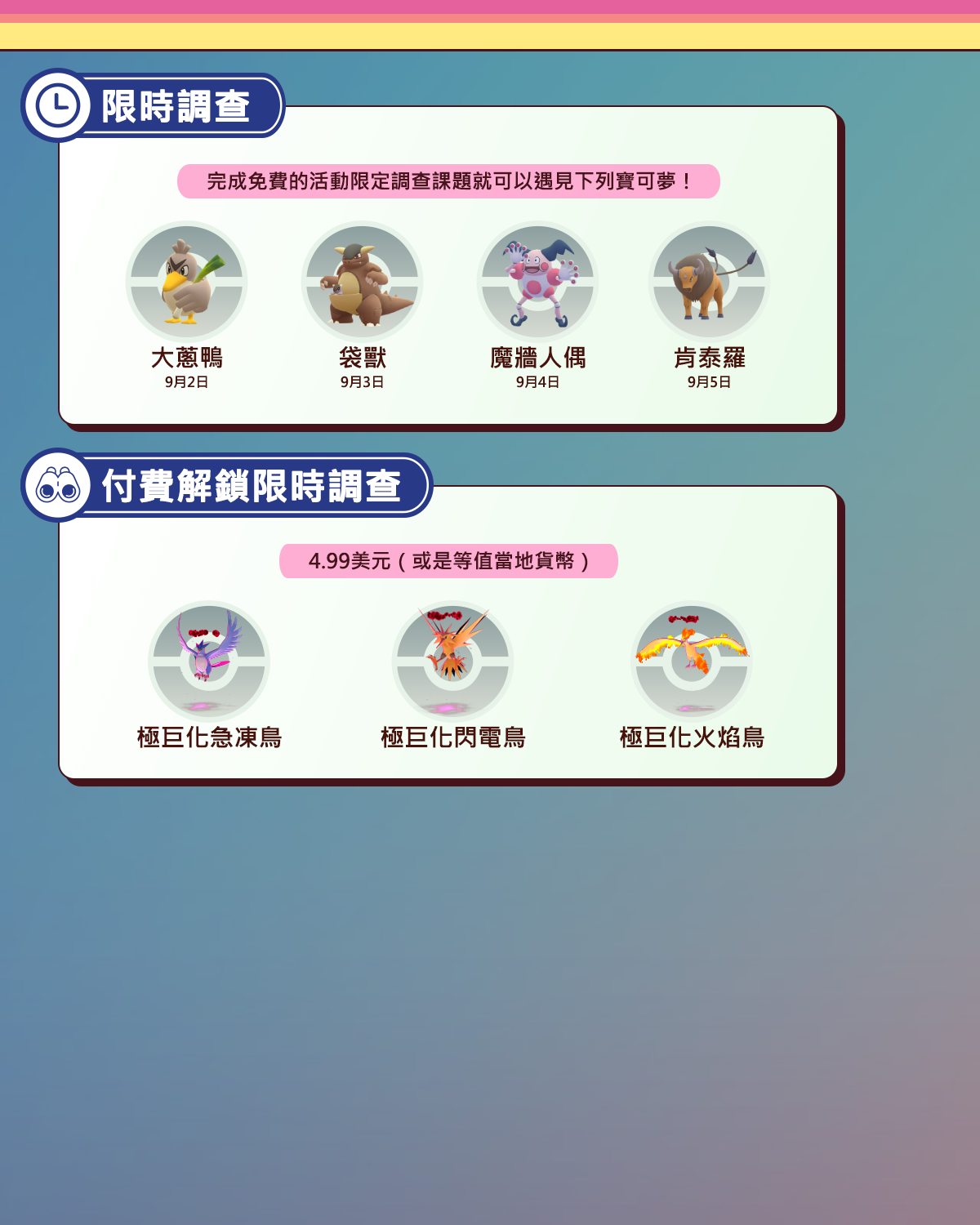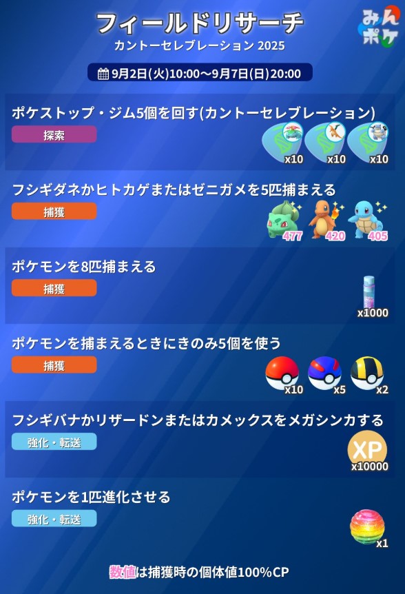 09/02 關都慶典活動 付費田野限時調查任務 收藏家挑戰 獎勵加碼 Pokemon GO 2025