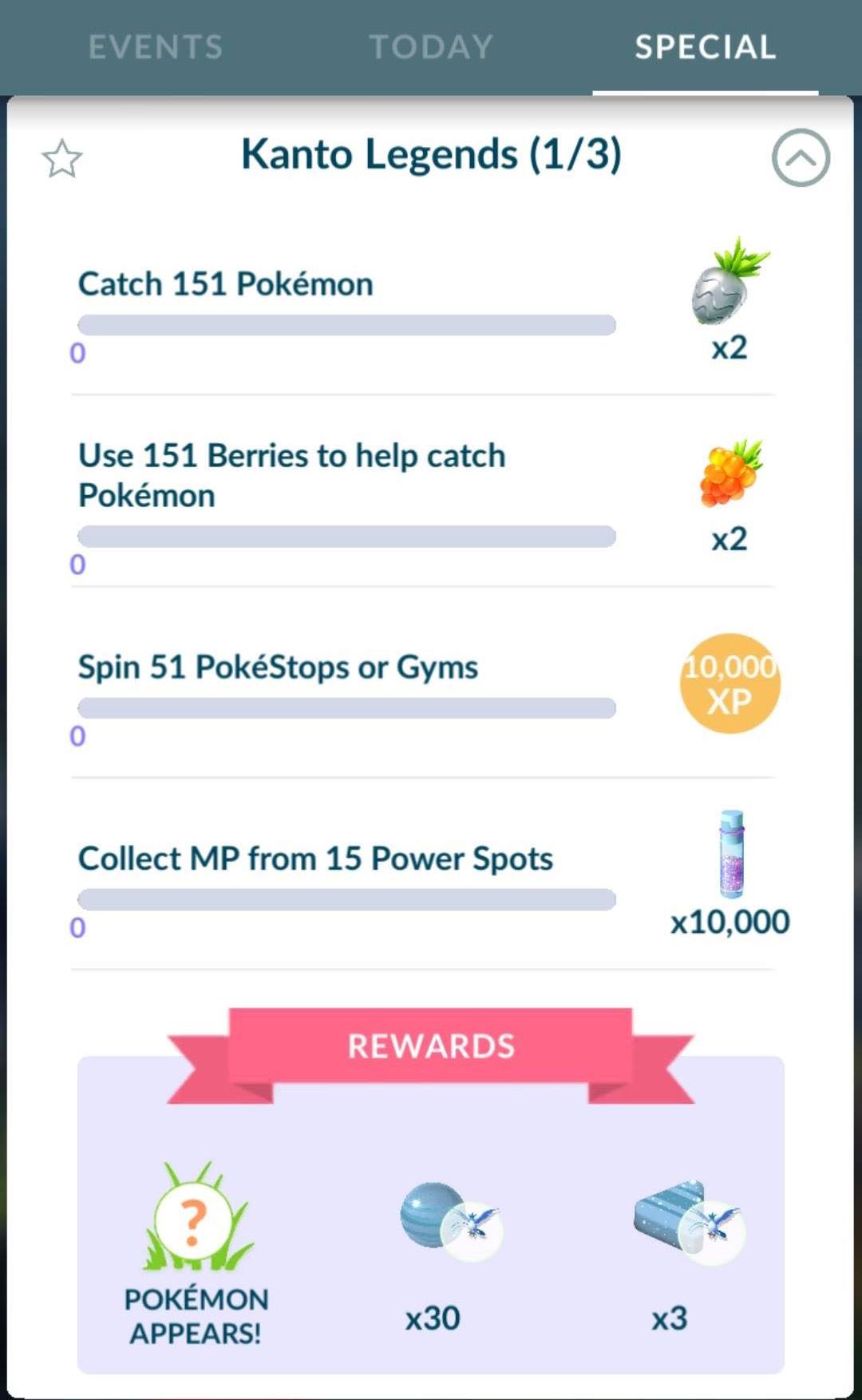 只要完成調查課題就能獲得經驗、星塵、mega能量,並遇見來自關都地區,且平常只在特定地區出現的寶可夢!