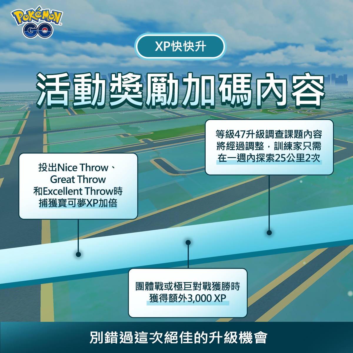 最後,等級47升級調查課題內容將經過調整,訓練家只需在一週內探索25公里2次,而非先前的8次。