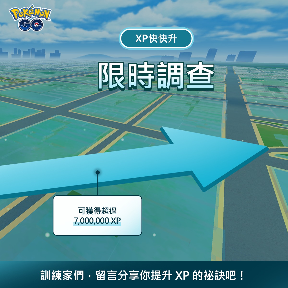此外,等級5以上的訓練家皆可參與本次活動的限時調查,完成調查即可獲得超過7,000,000 XP!