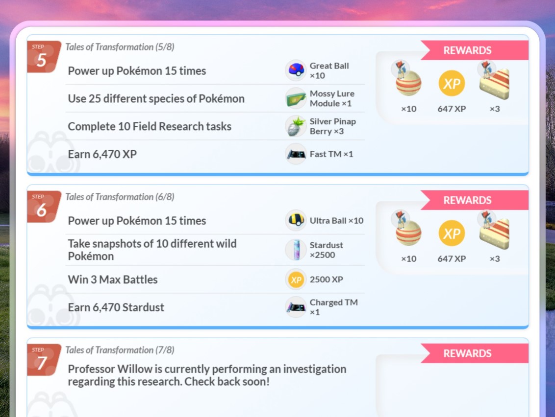 The next two pages for the Tales of Transformation Special Research in Pokémon GO will be available on October 10, 2025, at 10:00 a.m. local time.